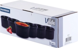 Chaque ramequin mesure environ 10 × 5 cm et a une capacité de 260 ml, une taille parfaite pour des portions individuelles. Le lot pratique de 6 pièces économise de la place grâce à sa forme empilable et facilite le service pour la famille et les invités. Produit original de la marque VILDE, fabriqué conformément aux normes européennes.