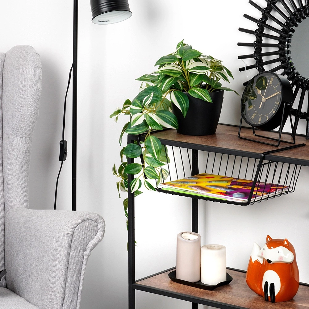 Le design filaire ouvert en métal est résistant, permet la circulation de l’air et offre un aperçu immédiat des objets rangés.