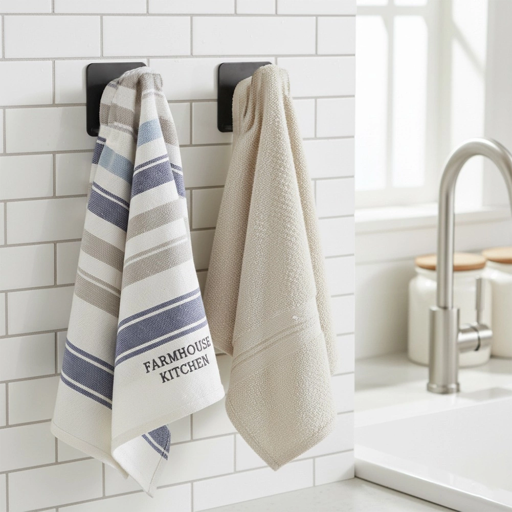 Les crochets offrent une profondeur suffisante pour accrocher confortablement torchons, gants ou petites éponges à vaisselle, qui peuvent ainsi sécher plus rapidement sans rester dans l’humidité. L’installation est rapide et propre – il suffit de dégraisser la surface lisse et de presser fermement.