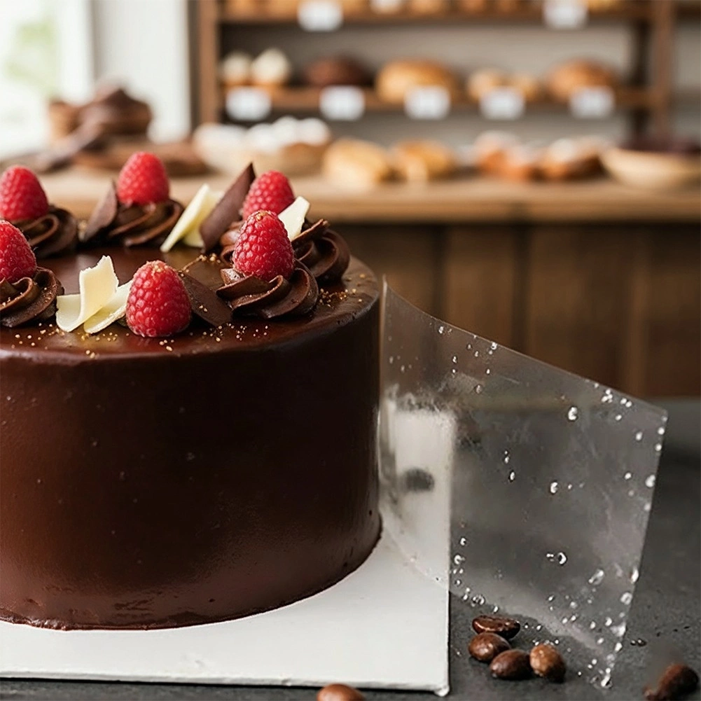 Pratique et transparent, le film protège les bords du gâteau contre le dessèchement et les dommages pendant la préparation, le refroidissement et la découpe. Grâce à son épaisseur de 125 microns, il est solide et résistant, tout en restant suffisamment flexible pour s’adapter facilement à tout diamètre de cercle ou de moule. Idéal pour les pâtissiers professionnels comme pour les amateurs.