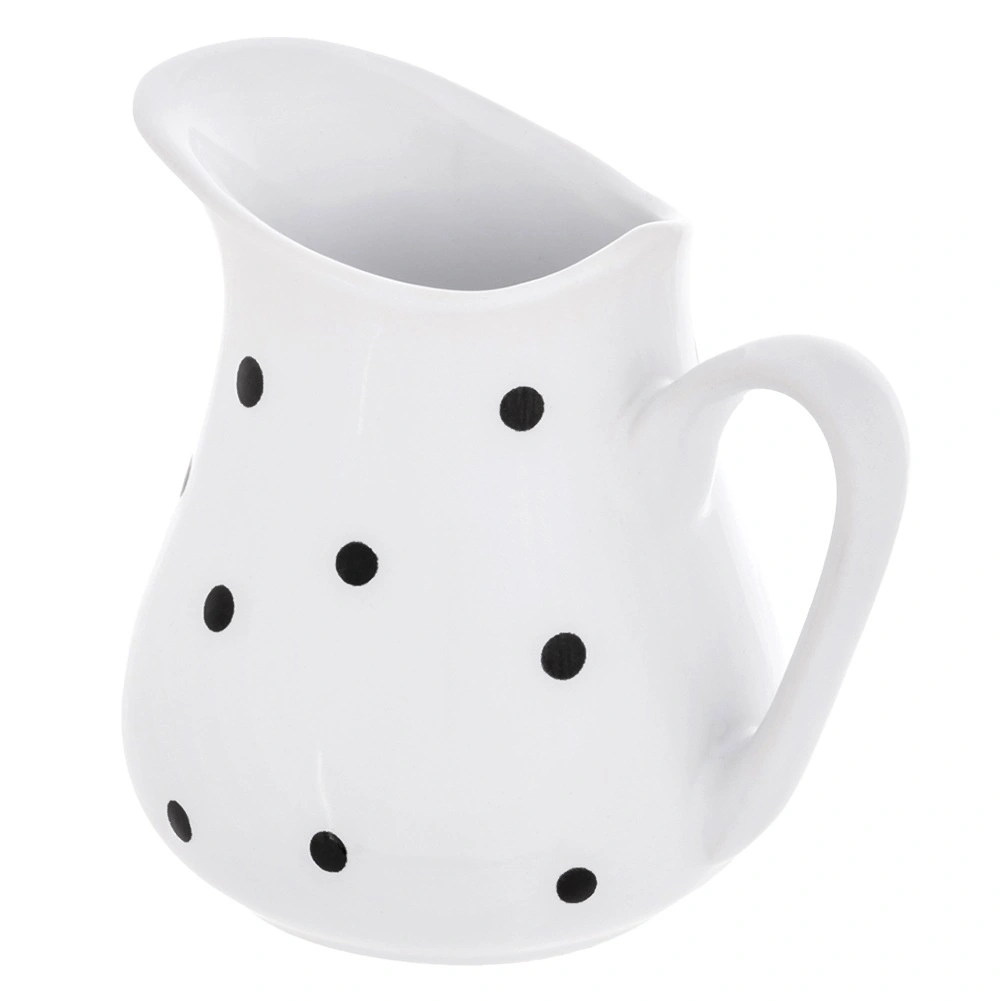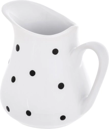Élégant pichet en céramique de 480 ml, blanc à pois noirs, idéal pour le service quotidien. Il offre une utilisation polyvalente pour l’eau, la limonade, le vin, le lait, la crème ou les sauces, dispose d’une anse ergonomique et d’un large bec verseur pour un service précis sans éclaboussures. Compatible lave-vaisselle et micro-ondes, son design décoratif mettra en valeur toute table.