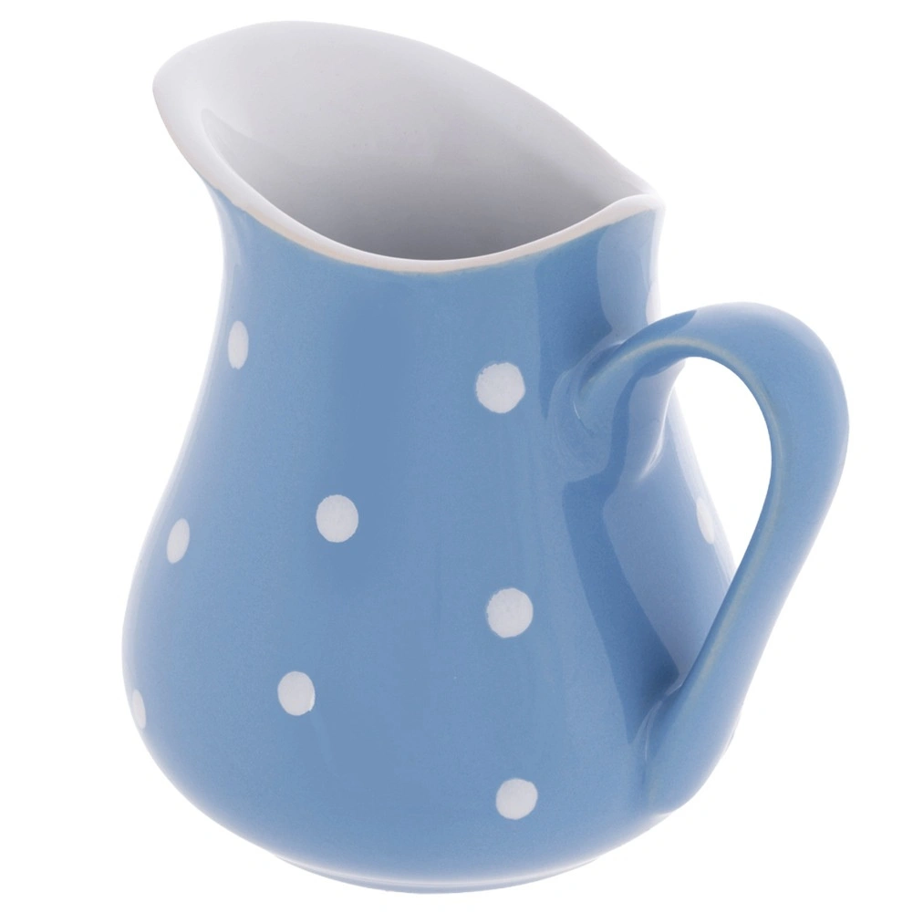 Ce pichet en céramique polyvalent convient à l’eau, la limonade, le vin, le lait et la crème, ainsi qu’au service des sauces. Grâce à ses dimensions compactes, il est idéal pour le petit-déjeuner, le thé de l’après-midi ou les réceptions à la maison. La glaçure bleue à pois blancs apporte une touche ludique et élégante à la table.