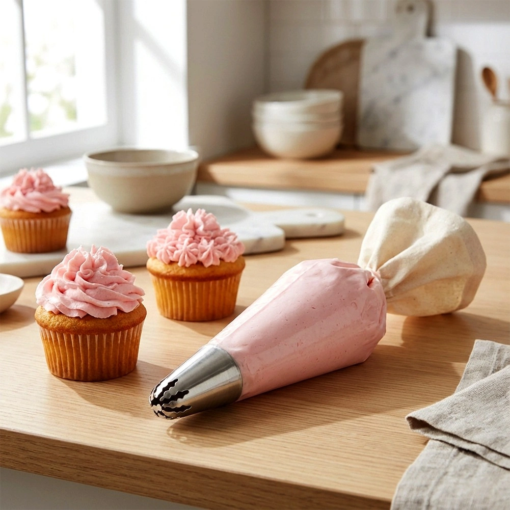 Pratique douille de pâtisserie en acier inoxydable avec ouverture en forme d’étoile, créant un décor étoilé et floral spectaculaire sur gâteaux, cupcakes et desserts. Elle est durable, compatible avec les aliments, s’adapte aux poches à douille jetables et réutilisables et peut être lavée au lave‑vaisselle.