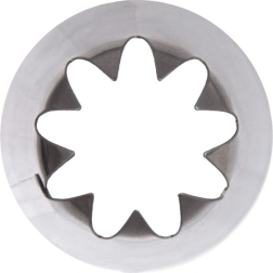 Cette douille étoilée en acier inoxydable est une aide fiable pour créer des étoiles marquées, des rosettes, des bordures et des motifs floraux. Grâce à la précision de la découpe, vous obtenez des lignes nettes et une finition professionnelle pour vos desserts.