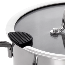 La casserole est parfaite pour les soups, les goulaschs, les viandes mijotées et les plats tout-en-un. Le couvercle en verre trempé avec éléments en silicone permet un égouttage sécurisé sans accessoires supplémentaires et une évacuation confortable de la vapeur. Grâce à son design élégant, vous pouvez servir directement à table.