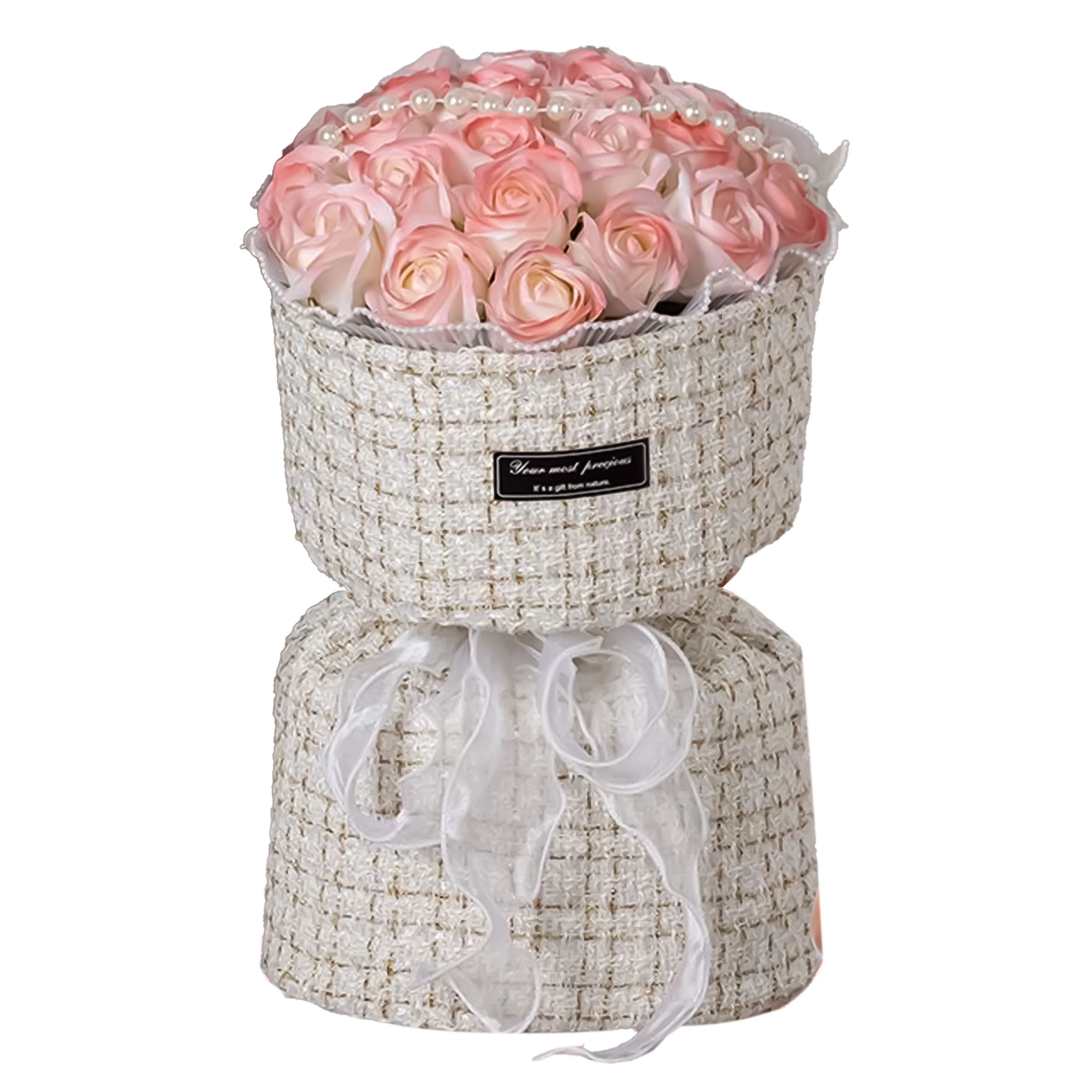 Roses en savon réalistes et accents de perles