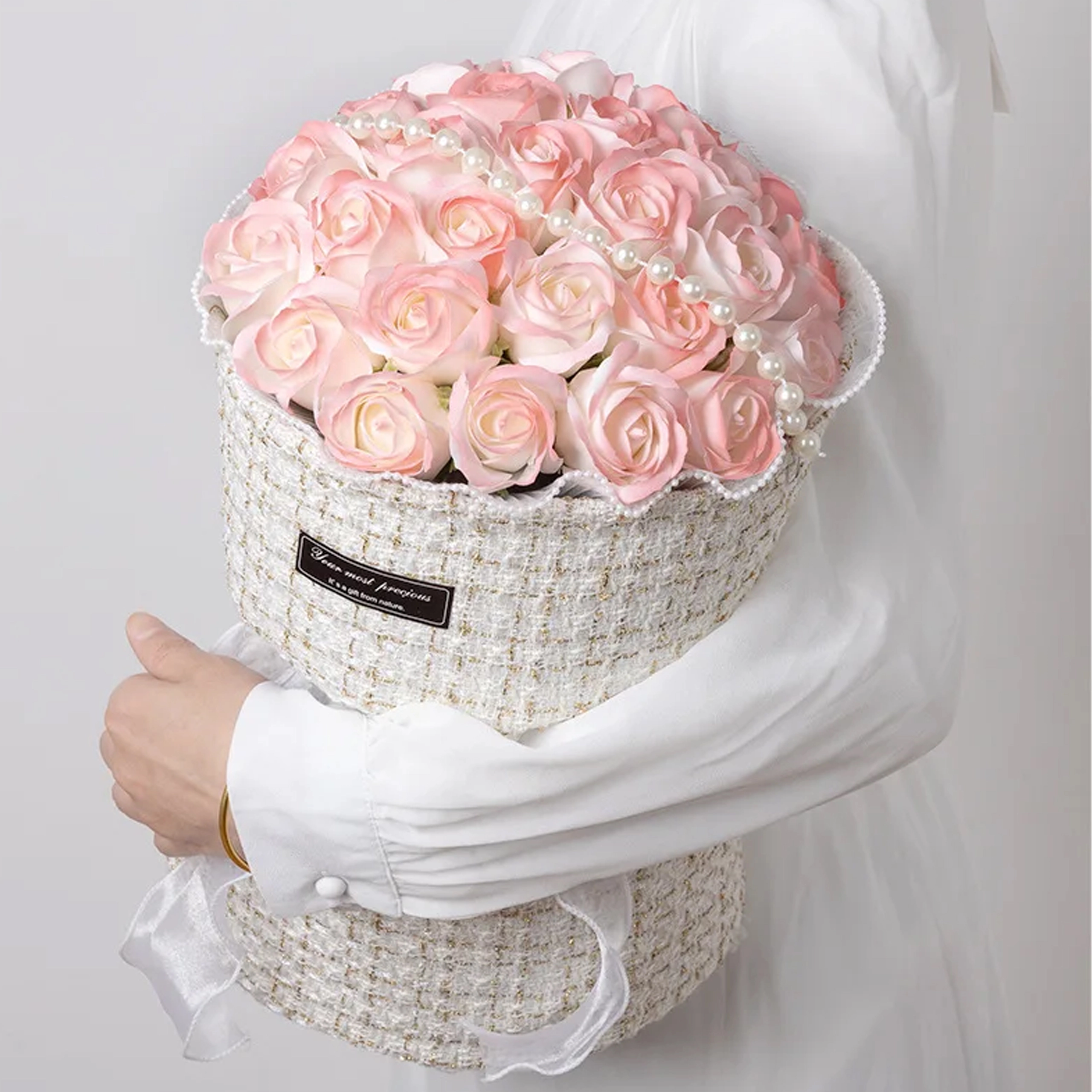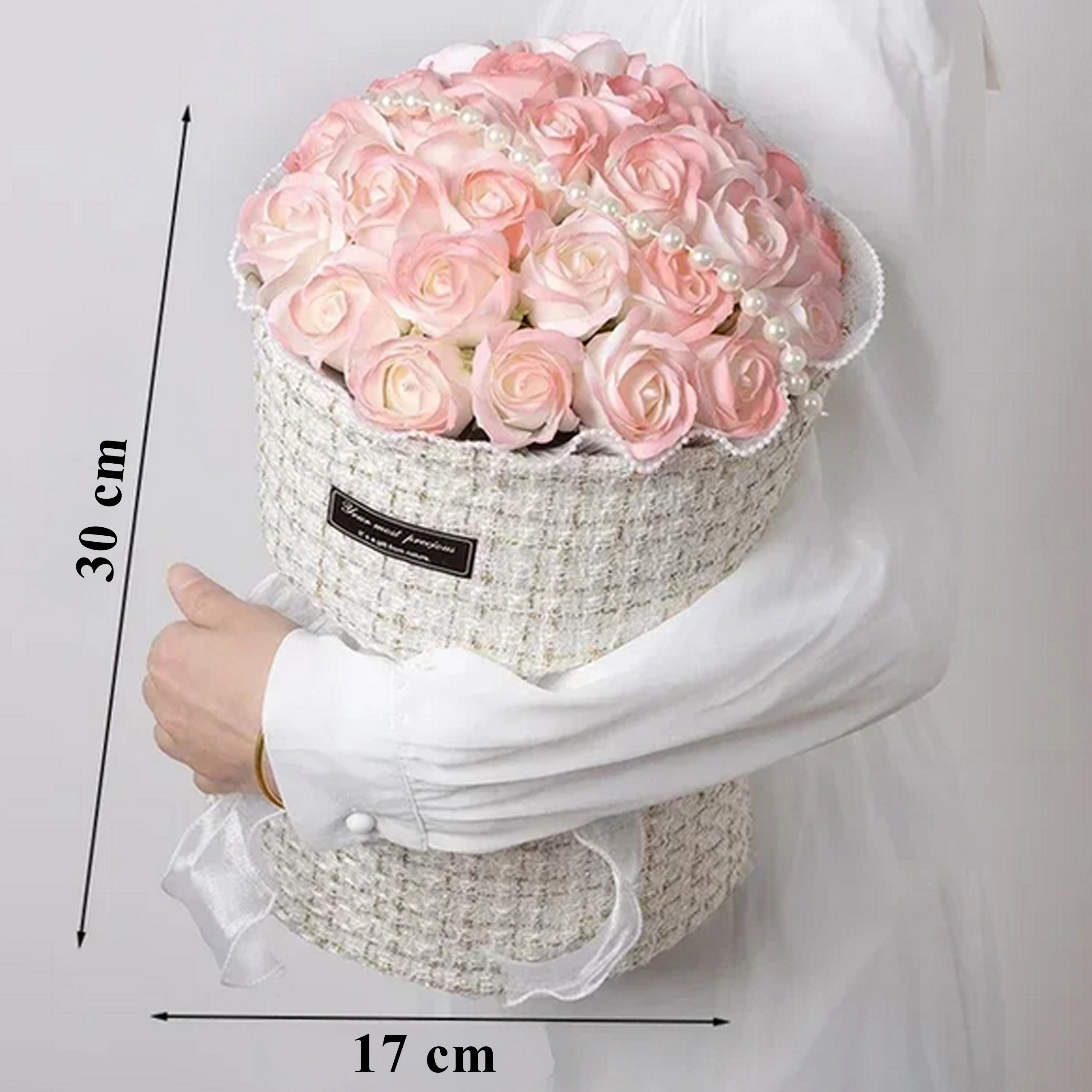 • Aspect luxueux – fleurs réalistes, teintes délicates, perles décoratives.