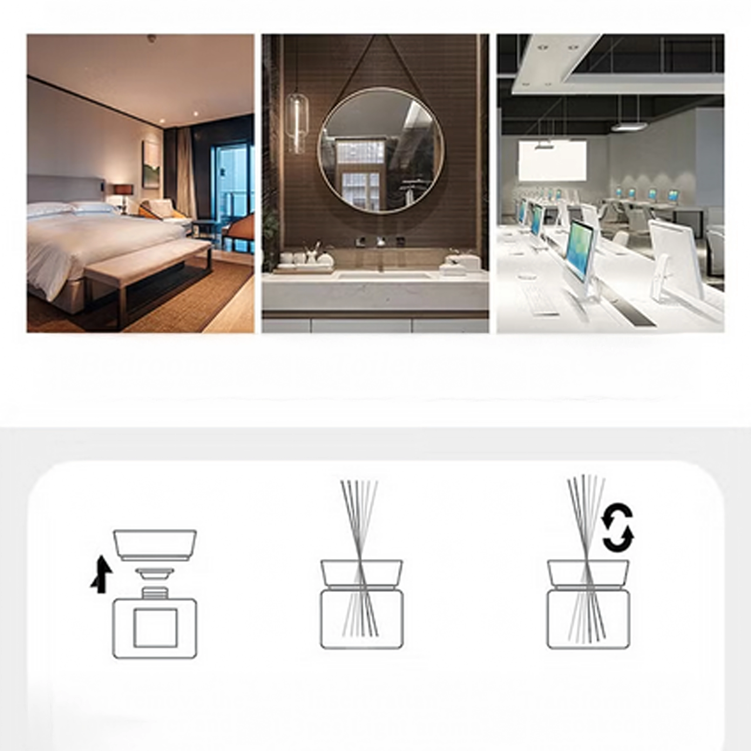 Les tiges de rotin diffusent progressivement le parfum sans flamme ni prise électrique. Convient à la chambre, la salle de bains et le bureau ; pour raviver l’intensité, il suffit de retourner les tiges.