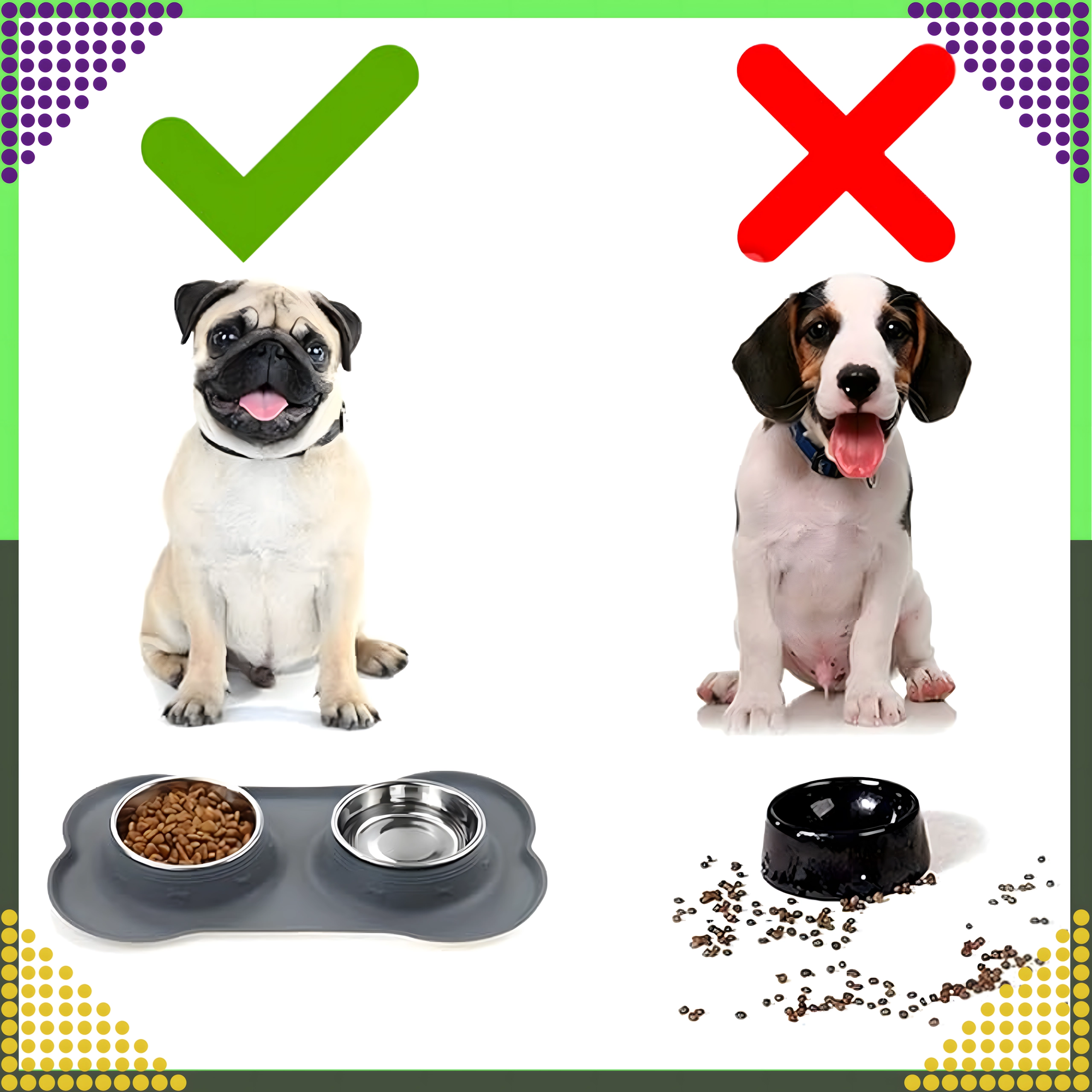 Le tapis en forme d’os stabilise les bols, retient les gouttes et les miettes et protège le sol contre les salissures.