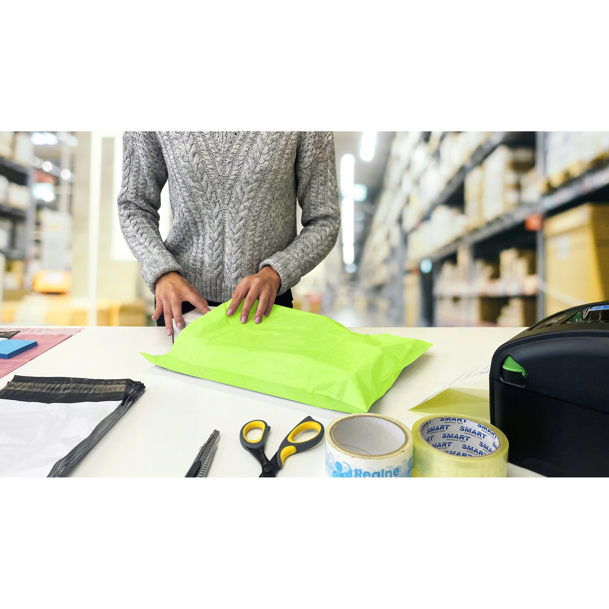 - Enveloppes plastiques de messagerie (poly mailers)