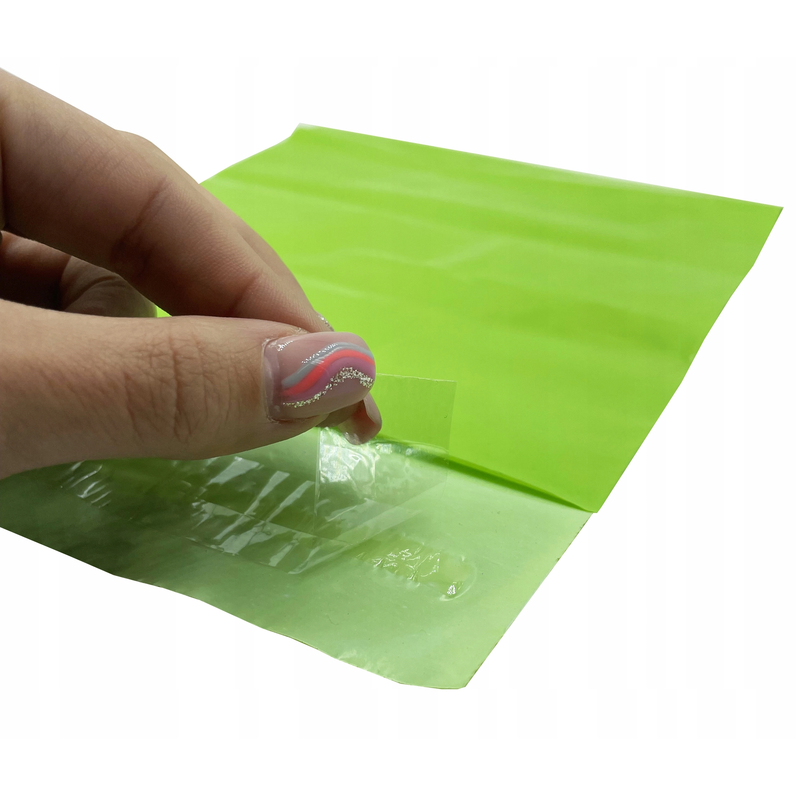 - Bande autocollante (peel‑and‑seal) avec film protecteur