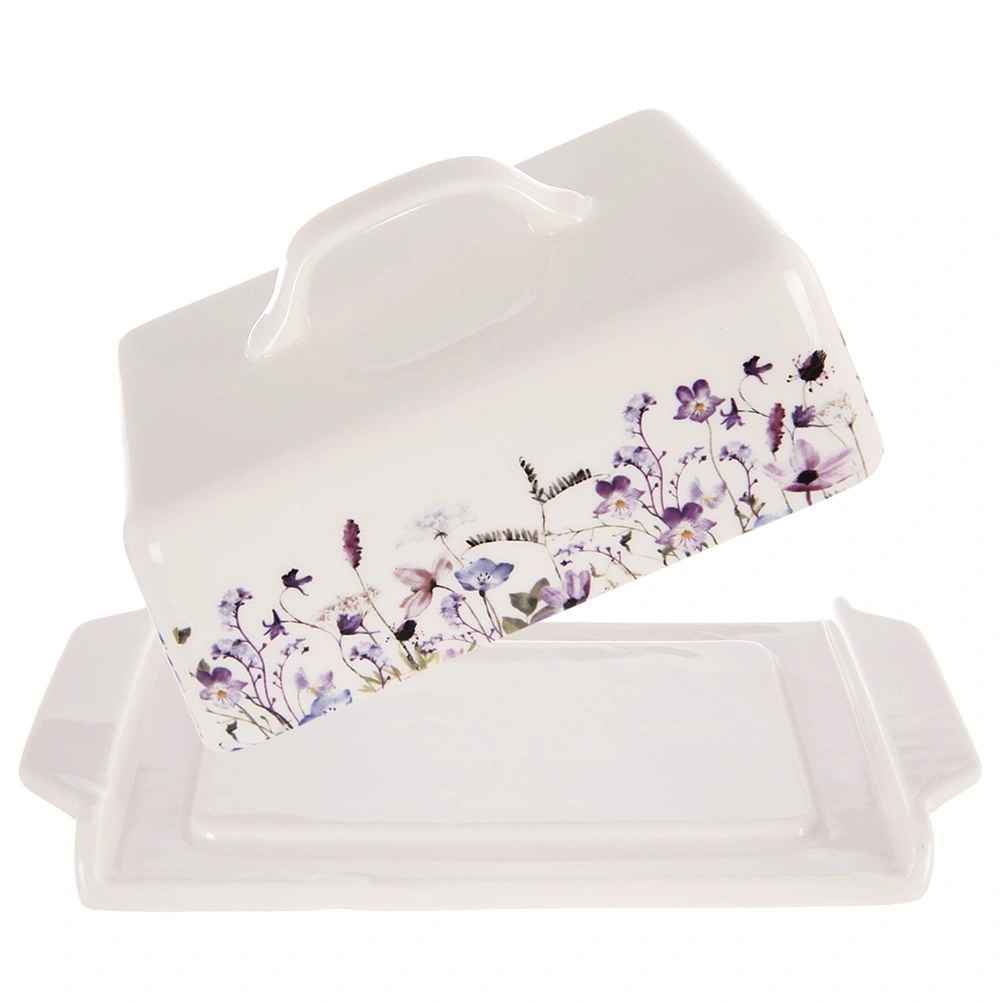 Ce beurrier en porcelaine blanche, orné d’un charmant décor de fleurs des champs, est un accessoire à la fois stylé et fonctionnel pour toute cuisine. Il garde le beurre protégé, frais et prêt à être servi directement à table. Grâce au couvercle doté d’une poignée confortable, la manipulation est aisée et le beurre reste hygiéniquement couvert.