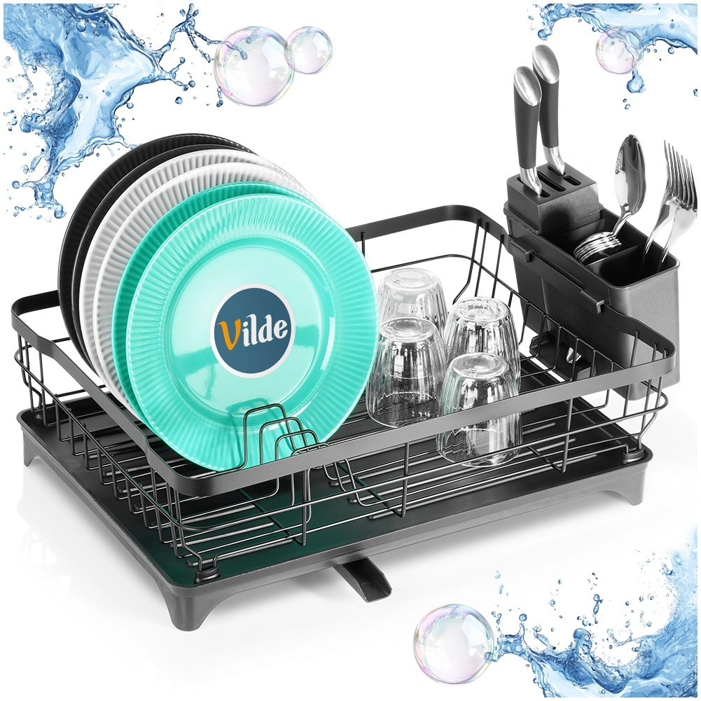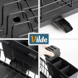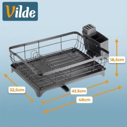 Le bec intégré au plateau assure un écoulement contrôlé de l’eau directement vers l’évier, laissant le plan de travail sans traces d’humidité. L’égouttoir convient à toutes les cuisines – modernes ou classiques – et, grâce à son entretien facile, fait gagner du temps au quotidien. Produit original de la marque VILDE, fabriqué conformément aux normes européennes.