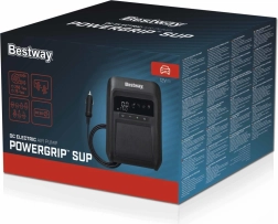 Pompe électrique BESTWAY PowerGrip 12 V performante avec écran numérique, arrêt automatique et pression max. 20 PSI, gonfle rapidement SUP, bateaux et rafts. Elle offre un double moteur, des modes basse et haute pression et un réglage précis par paliers de 0,1 PSI.