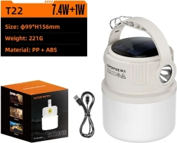 Lampe de camping Superfire T22 avec charge solaire et éclairage à 360°