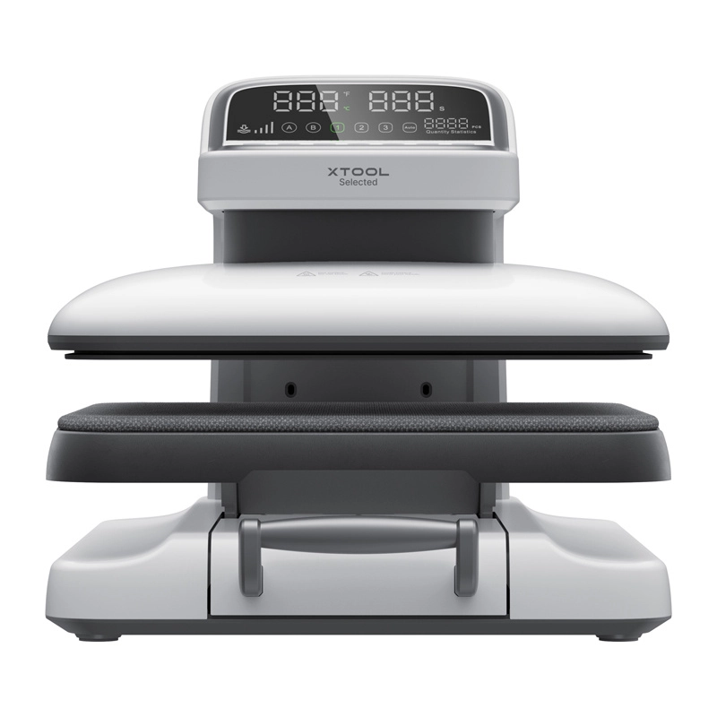 xtool selected heatpress 2 est une presse intelligente pour transferts qui automatise la pression, le temps et la température. Il suffit de choisir un mode, de placer le matériau et l’appareil presse, chronomètre et s’ouvre automatiquement en fin de cycle. Grâce à une pression stable de 60–180 kg, vous obtenez des couleurs plus intenses, des contours nets et des impressions très résistantes même sur des textiles plus épais.