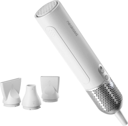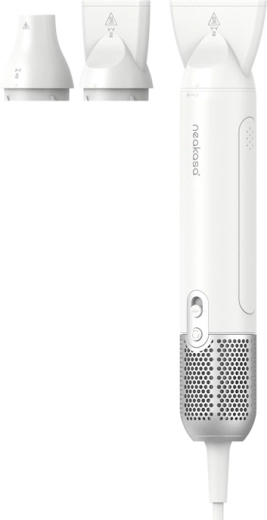 La boîte inclut 3 embouts : large plat pour les grandes surfaces, plat classique pour un séchage rapide et rond pour le volume et les zones difficiles d’accès (pattes, contour des oreilles). Le sèche-cheveux ne pèse que 550 g, mesure 28,8 cm et dispose de commandes tactiles douces, d’un filtre magnétique pour un nettoyage facile et d’un câble de 2 m pour une manipulation confortable.