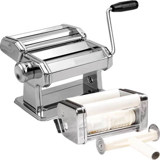 Grâce à la fonction 3-en-1, préparez sur un seul appareil des feuilles, des nouilles coupées et des raviolis 4,5 × 4,5 cm. La largeur des rouleaux de 14,5 cm assure une utilisation polyvalente et la double lame (2 mm et 6,5 mm) couvre les formats de pâtes les plus courants. La manivelle pratique et la possibilité de fixation au plan de travail garantissent une utilisation confortable et sûre.