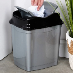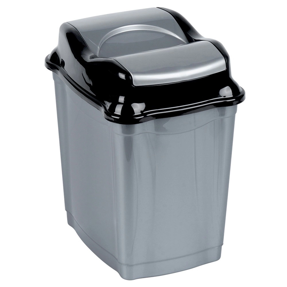 Poubelle pratique de 16 litres en gris avec couvercle basculant noir brillant, idéale pour la cuisine, la salle de bains, le bureau à domicile ou les salles d’attente. Le plastique résistant garantit une longue durée de vie et un faible poids, ce qui facilite la manipulation et l’entretien.