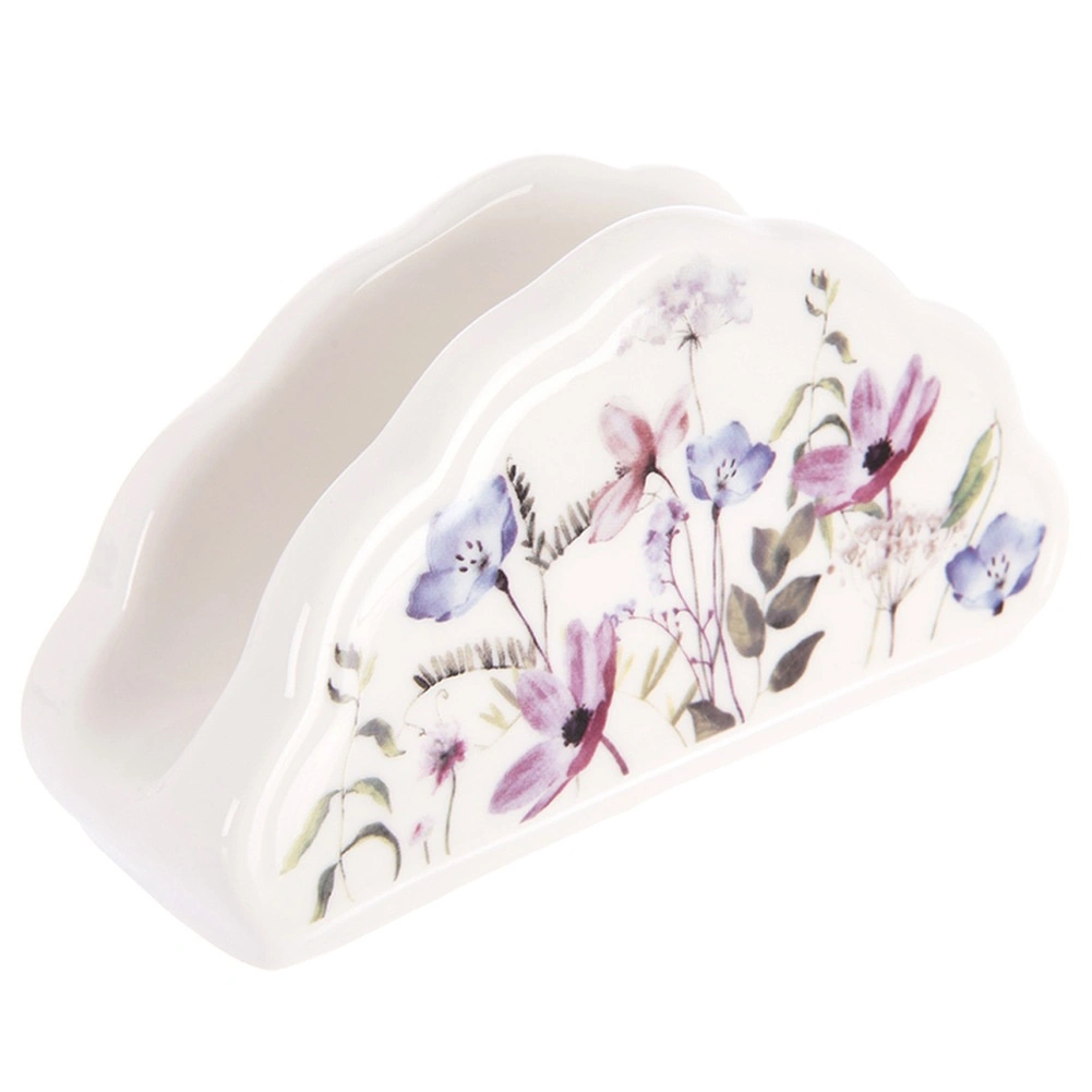 Découvrez un accessoire à la fois stylé et pratique pour votre table. Le porte-serviettes en porcelaine LOUKA, en glaçure blanche avec un délicat motif de fleurs des prés, apporte à votre table une touche fraîche et élégante. Grâce à sa construction stable, il maintient les serviettes droites et à portée de main, que vous serviez un déjeuner familial, un barbecue au jardin ou une réception pour vos invités.