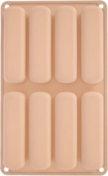 Le moule à huit cavités allongées cuit de manière homogène et produit des portions régulières, idéales pour le tiramisu, les desserts et la décoration.