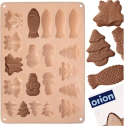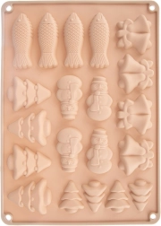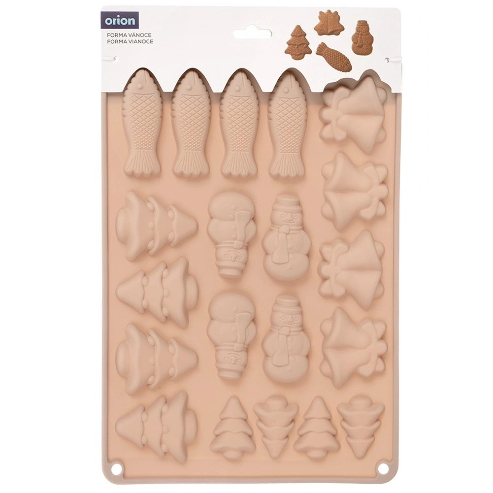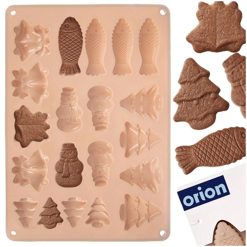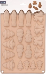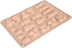 Ce moule en silicone beige de 34 × 24,5 × 1 cm est idéal pour préparer des biscuits de Noël, pain d’épices, chocolats et pralines. Le silicone de haute qualité garantit un démoulage facile sans adhérence et une cuisson ou une prise homogène. Avec une seule fournée, vous réalisez jusqu’à 20 pièces dans 5 formes différentes.