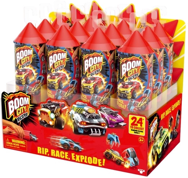 Découvrez un divertissement explosif avec les voitures BOOM CITY RACERS en pack simple S1 ! Chaque voiture est cachée dans une capsule lance-fusée façon feu d’artifice et « explose » littéralement à l’impact pour l’effet. Grâce au mécanisme à corde, elle part à toute vitesse vers l’avant. Collectionnez les 24 modèles, y compris des pièces rares et ultra rares.