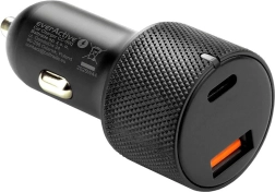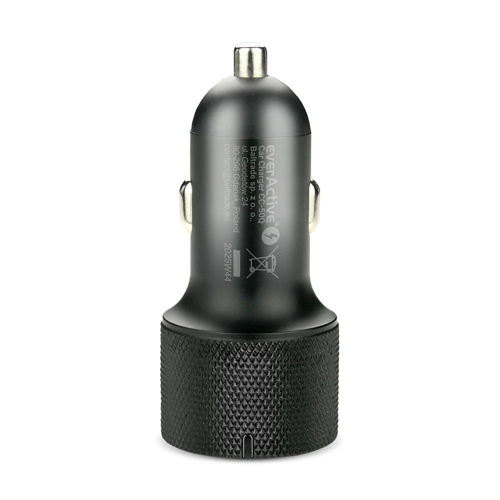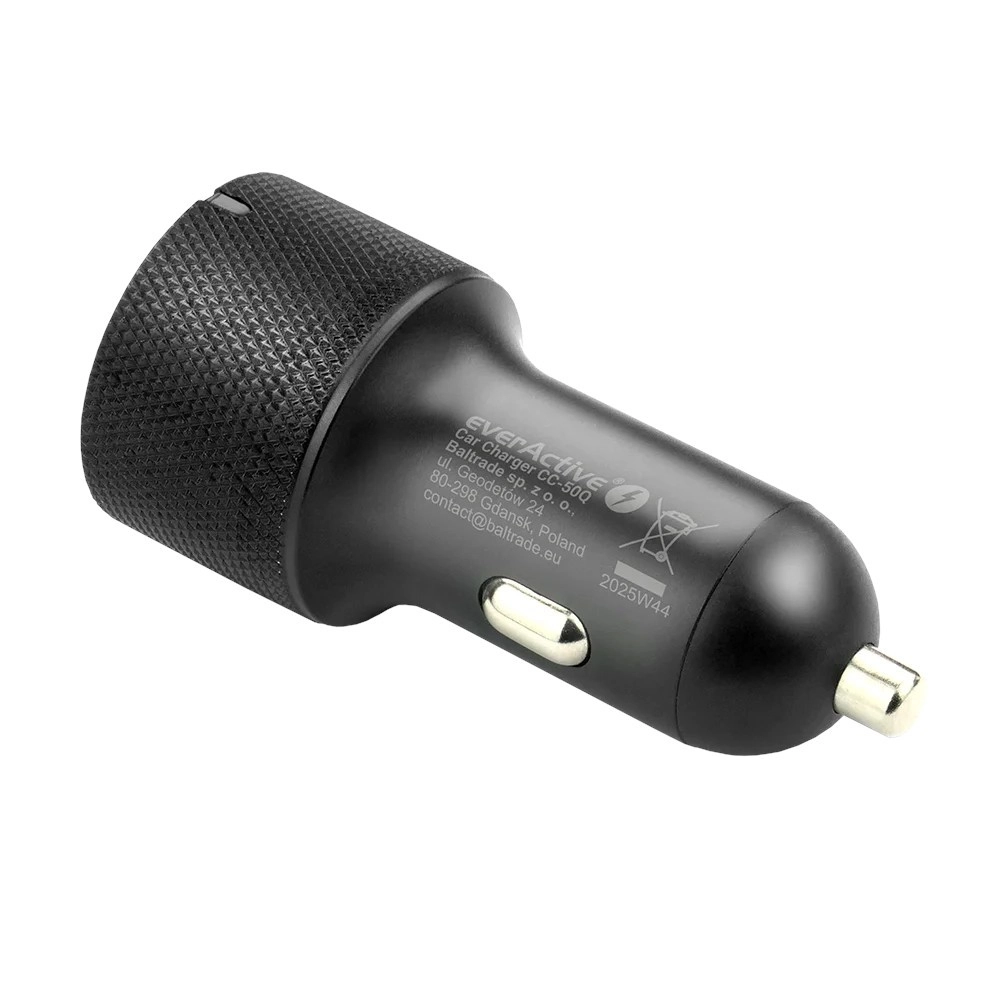 Le chargeur EVERACTIVE, à la fois stylé et résistant, est un choix idéal pour toute voiture. Il prend en charge les standards de charge rapide modernes USB‑C PD et QC 3.0, garantissant vitesse maximale et sécurité de charge. Le corps texturé facilite la manipulation et sa conception compacte ne dépasse pas de la prise.
