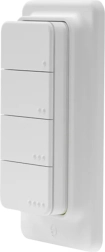 Bouton sans fil avec 4 touches programmables et jusqu’à 16 actions (clic, double clic, triple clic, appui long) pour des scénarios rapides sans téléphone.