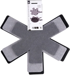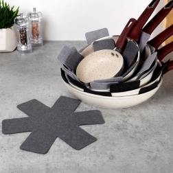 Le set de six protections en feutre est idéal pour un usage domestique quotidien. Placez simplement les intercalaires entre les poêles ou casseroles pour protéger efficacement leur surface lors de l’empilage et du transport. Grâce aux trois diamètres différents, vous adaptez facilement les protections aux diverses tailles d’ustensiles.