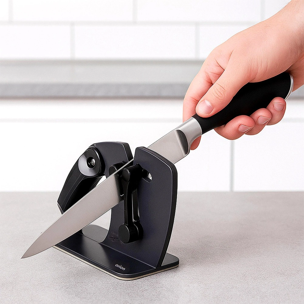 Aiguiseur manuel 2‑en‑1 pour couteaux avec angle d’affûtage automatique garantit un affûtage rapide, sûr et uniforme des lames lisses et dentelées. Grâce à l’ajustement automatique de l’angle 22°–46°, à une base antidérapante stable et à deux modes d’affûtage, vous restaurez facilement le tranchant des couteaux de cuisine à la maison comme en restauration.