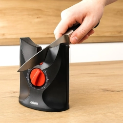 La base en silicone antidérapante maintient l’appareil fermement sur le plan de travail, rendant l’affûtage sécurisé et stable. Des matériaux abrasifs de qualité – carbure pour redresser rapidement le tranchant et céramique pour la finition – offrent des résultats durables sur les couteaux de cuisine courants, les couteaux à pain et les ciseaux.