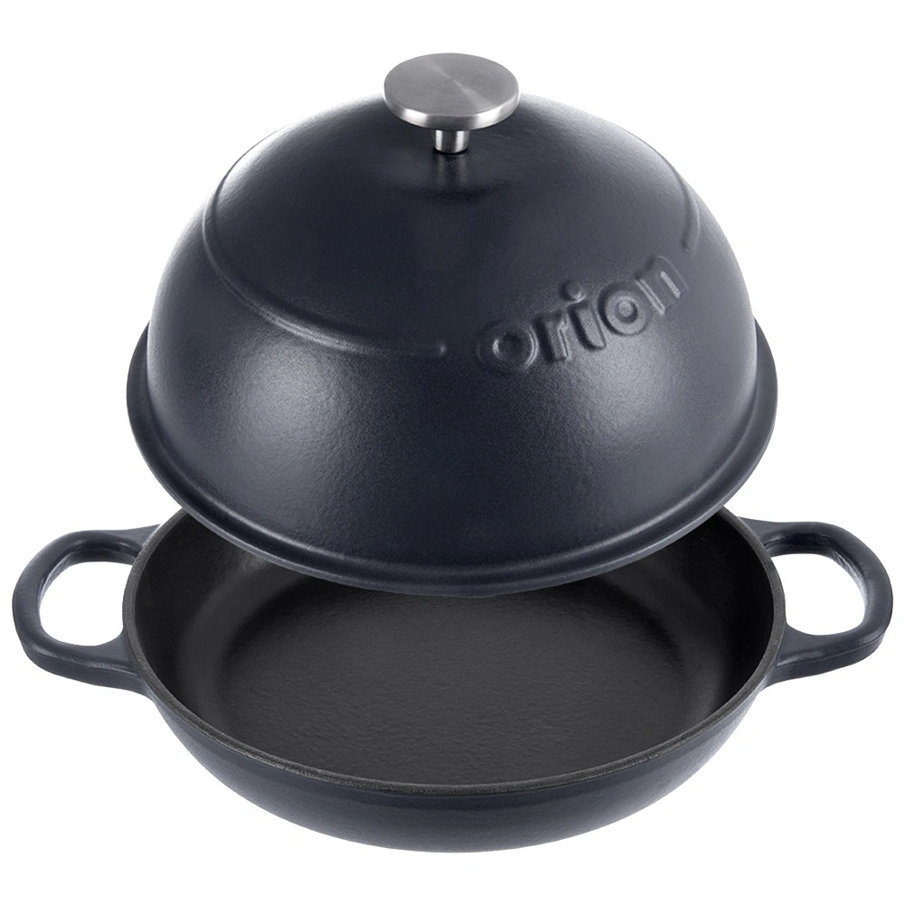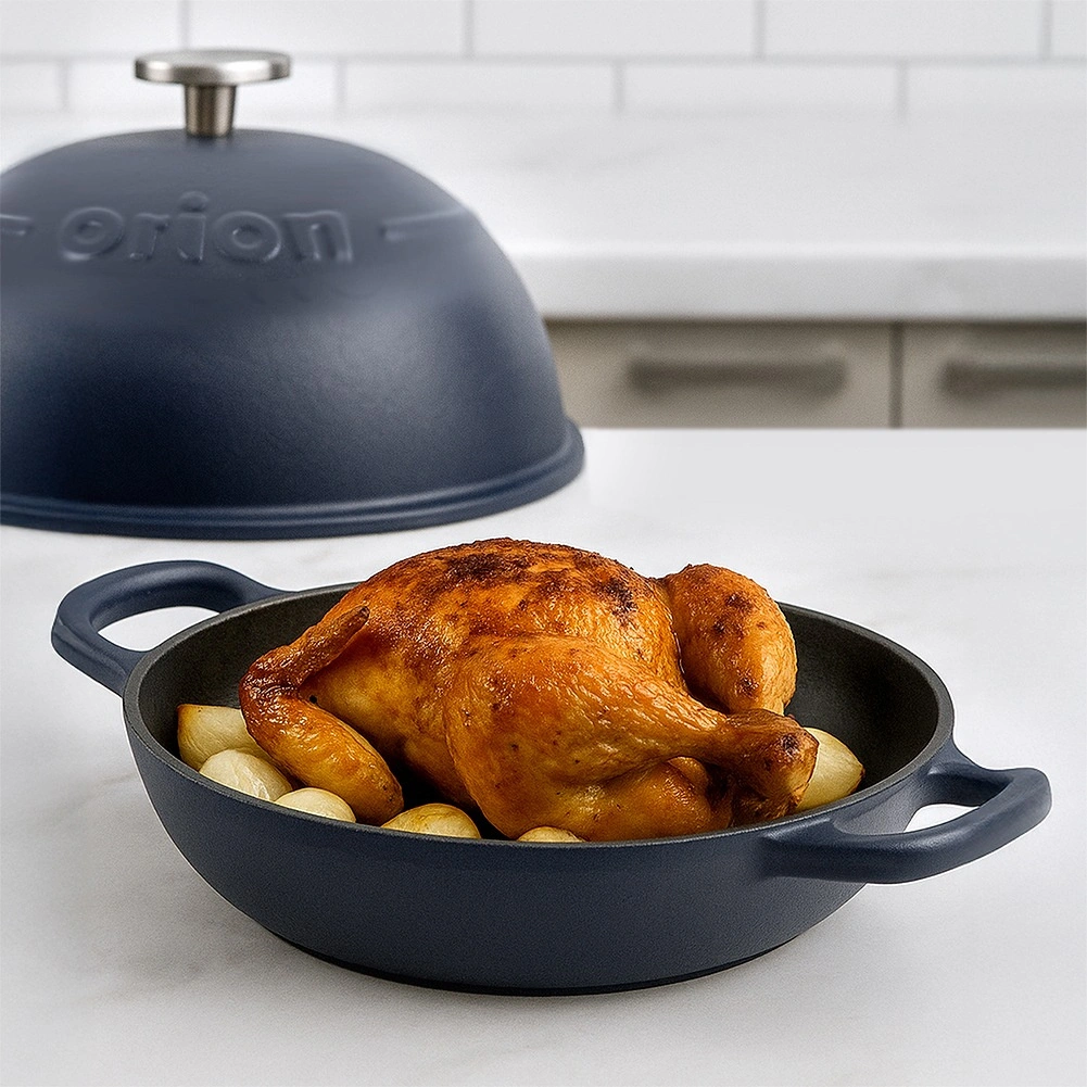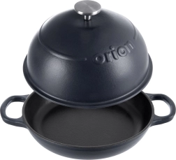 Ce moule en fonte émaillée avec couvercle est idéal pour un pain maison croustillant, un poulet doré à point ou des rôtis juteux. La partie inférieure sert de grande poêle en fonte, tandis que le couvercle haut assure une circulation de chaleur uniforme et un braisage en douceur.