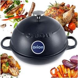 Moule universel en fonte émaillée avec couvercle pour cuire le pain, la viande, les légumes et les desserts sucrés. Diffuse parfaitement la chaleur, conserve longtemps la température et, grâce à son couvercle lourd, permet une cuisson au four comme un braisage avec un résultat juteux. Compatible avec tous les types de plaques, y compris l’induction, et au four jusqu’à 250 °C. Qualité éprouvée de la marque ORION.