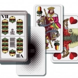 Jeu de cartes classique mariáš avec cartes à double tête, idéal pour les rencontres amicales et le divertissement. Le jeu est livré dans une boîte en plastique pratique pour un transport facile.