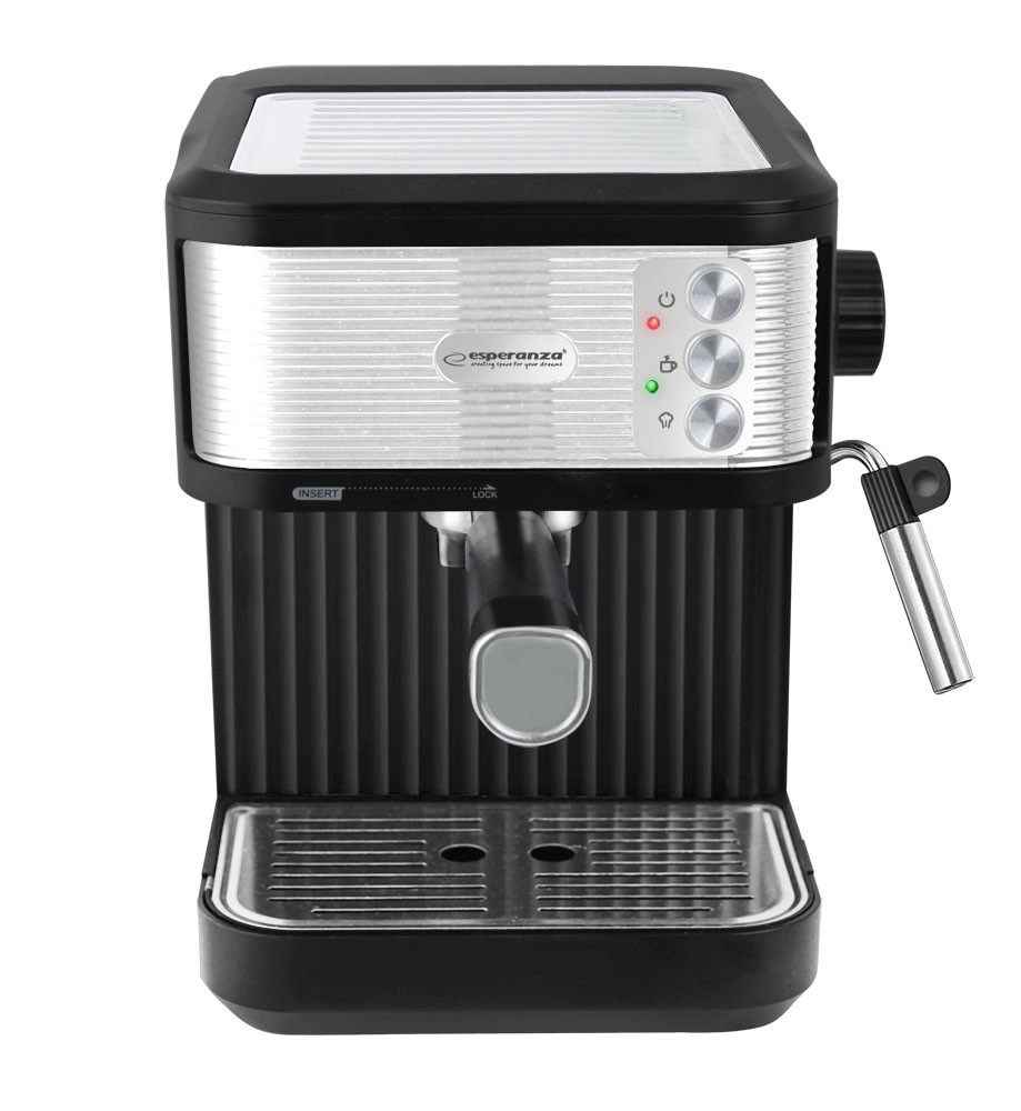 Machine à expresso à levier élégante Esperanza CATURRA avec pression de 20 bars, réservoir de 1,8 l et buse vapeur pour une mousse de lait onctueuse. Elle offre une préparation rapide de l’espresso, le chauffage des tasses et un nettoyage facile grâce au bac d’égouttage amovible.