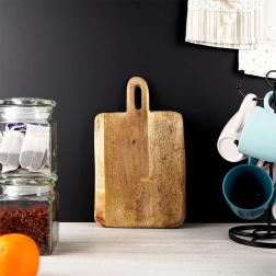 Alliez fonctionnalité et design : la planche en bois de manguier au style rustique est un excellent choix pour la préparation comme pour la présentation des plats. Le veinage naturel du bois et les bords doucement arrondis garantissent un usage confortable et sûr, tandis que la poignée intégrée avec trou facilite le transport et la suspension.