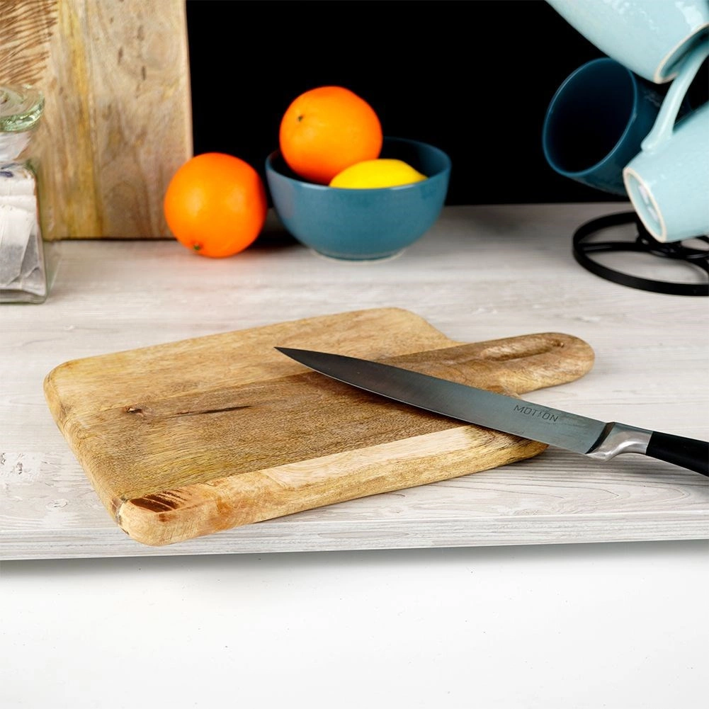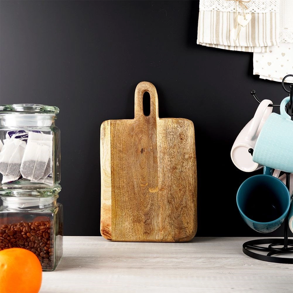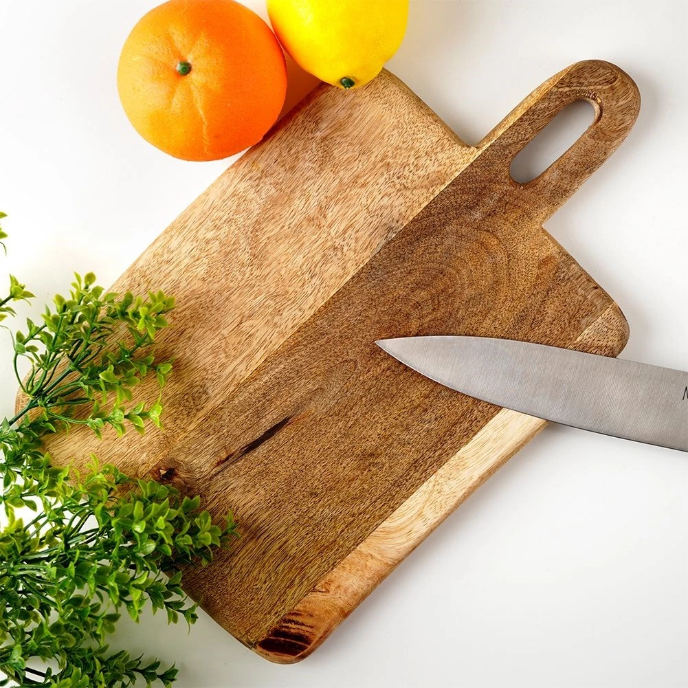 Élégante planche en bois de manguier de 33 × 20 × 2 cm, idéale pour un usage quotidien en cuisine. Elle offre une surface de travail solide et résistante pour couper viande, légumes et fruits, et convient aussi au service des fromages, charcuteries et snacks. Grâce à sa poignée pratique, elle se transporte et se suspend facilement. Le bois de manguier est écologique, sûr pour le contact alimentaire, sèche rapidement et n’absorbe pas les odeurs. Son style rustique apporte une touche décorative à la cuisine.