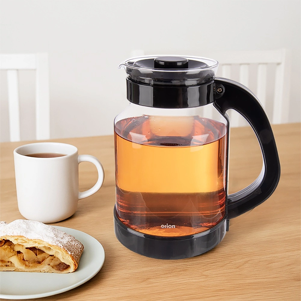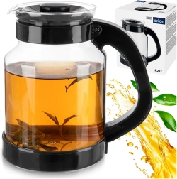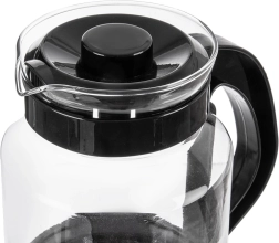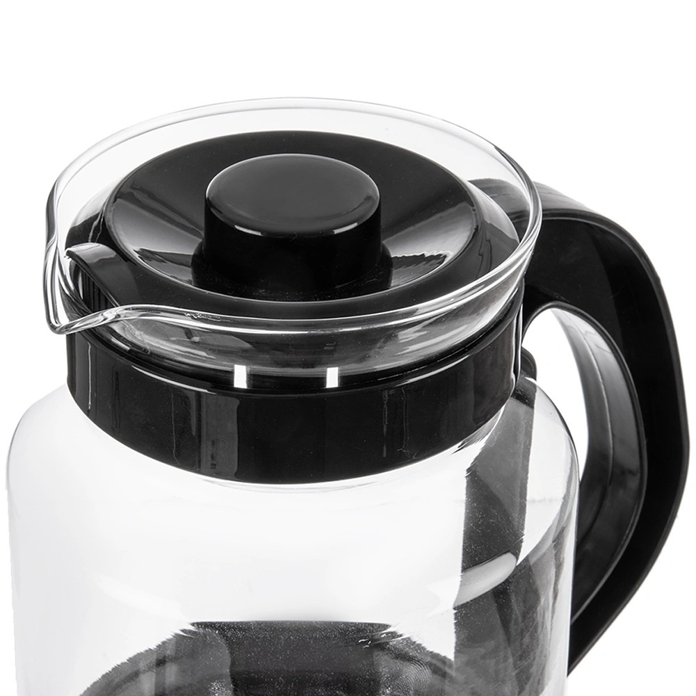 Carafe universelle en verre de 2,25 l pour une préparation et un service faciles du thé, du café et des boissons froides. Fabriquée en verre borosilicaté résistant avec couvercle noir et anse ergonomique pour un service sécurisé. Haute résistance aux températures, bec verseur pratique et couvercle pour préserver la fraîcheur font de cette carafe un excellent choix pour un usage quotidien à la maison comme au bureau.