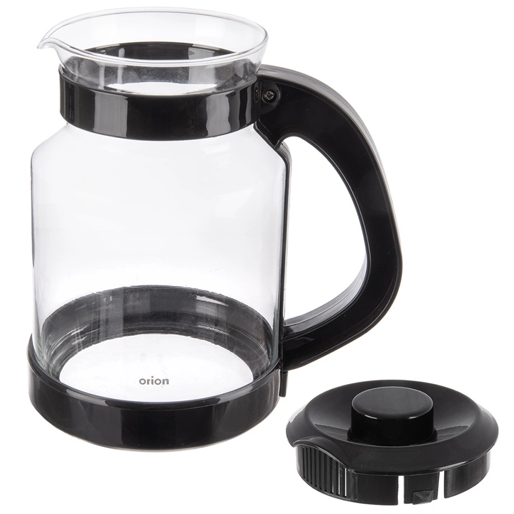 La carafe est fabriquée en verre borosilicaté résistant aux hautes températures, complétée par une anse et un couvercle en plastique de couleur noire. Grâce au bec verseur bien pensé, le service est fluide et sans gouttes, et l’anse ergonomique assure une prise en main sûre sans risque de brûlure.