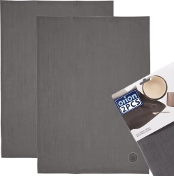Pratique lot de deux torchons de cuisine de 70 × 50 cm en 100 % coton dans une élégante couleur grise. Ils se distinguent par leur grande capacité d’absorption, leur résistance et leur utilisation polyvalente – vaisselle, mains ou comme accessoire de table stylé. Finition de qualité avec étiquette décorative et lavage possible jusqu’à 40 °C.