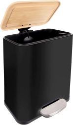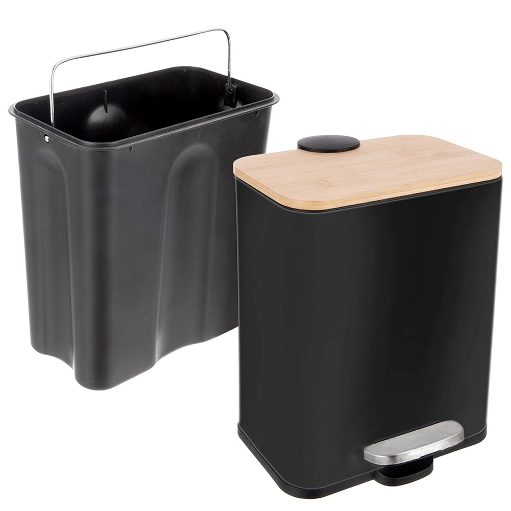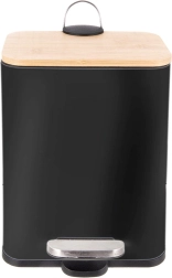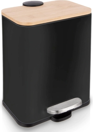 Poubelle compacte et élégante de 5 l avec ouverture à pédale pour une utilisation parfaitement hygiénique. Elle possède un corps métallique robuste, un couvercle en bambou, un seau intérieur amovible et une fermeture en douceur. Grâce à sa forme étroite, elle s’intègre idéalement dans les petits espaces de la cuisine, de la salle de bain ou du bureau.