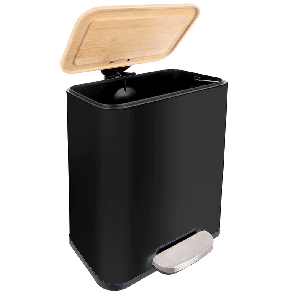 - Matériaux durables – acier inoxydable noir, couvercle en bambou, seau intérieur en plastique.