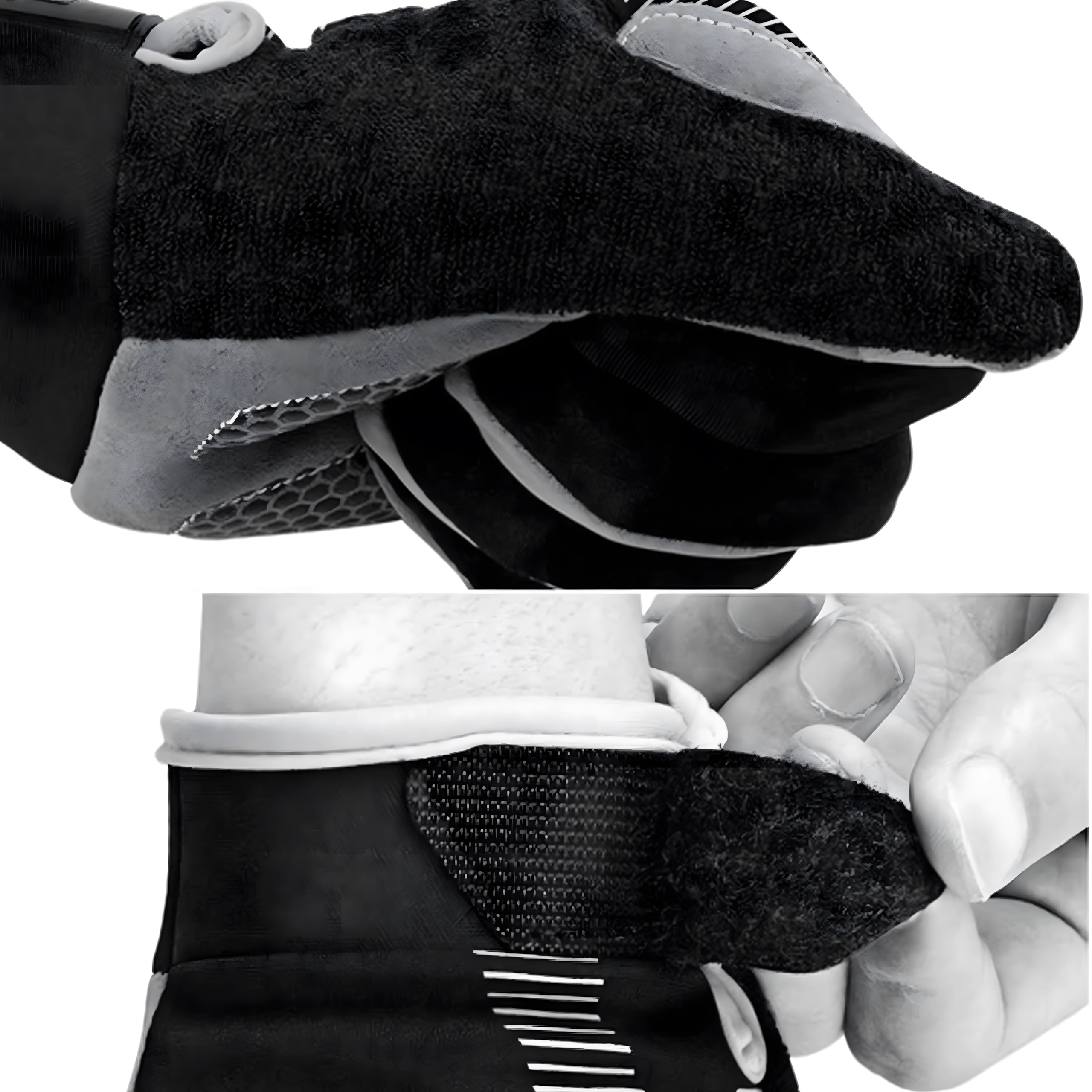 Paumes texturées et rembourrées avec motifs en caoutchouc pour accroître la traction et le confort sur le guidon comme sur le téléphone.