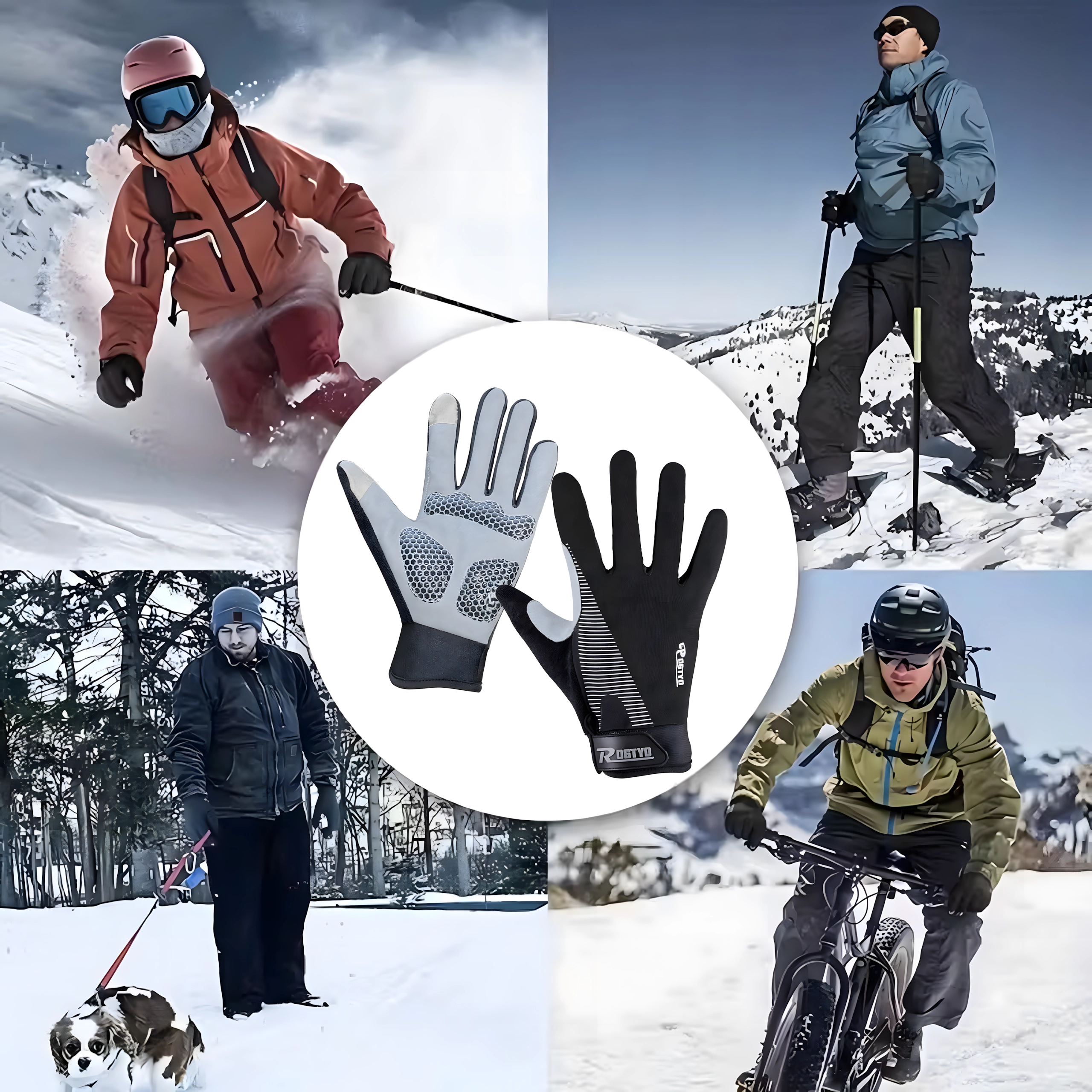 Gants d’hiver polyvalents pour le cyclisme, la course et l’outdoor. Ils offrent une couverture intégrale des doigts, des embouts tactiles pour utiliser le téléphone, des paumes antidérapantes et un matériau chaud et respirant pour un confort optimal et une prise sûre par temps froid.