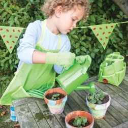 L’arrosoir avec buse solide et poignées supérieure et latérale tient bien dans les petites mains et permet un arrosage précis sans éclaboussures. Les poignets élastiques des gants empêchent la saleté d’entrer et maintiennent les gants bien en place. L’ensemble se compose de 6 pièces et constitue un cadeau parfait pour les enfants dès 3 ans.