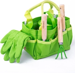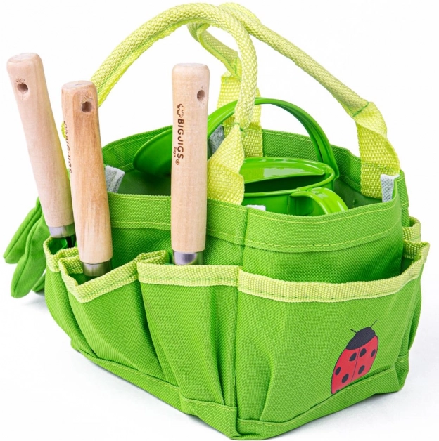 Ce set de jardinage vert pour enfants de BIGJIGS TOYS favorise l’apprentissage par le jeu et l’amour de la nature. Le sac en toile au motif de coccinelles garde tout l’équipement bien organisé et à portée de main, tandis que les manches en bois de qualité et les embouts métalliques des outils assurent une utilisation sûre et durable. Idéal pour les premiers semis, rempotages et arrosages avec les parents.
