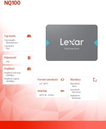 LEXAR NQ100 est une mise à niveau simple et efficace pour tout ordinateur. Il offre une réponse système vive, des lancements de programmes fluides et des transferts stables grâce à une vitesse de lecture jusqu’à 550 MB/s. Par rapport à un disque dur classique, il fonctionne en silence et avec une consommation d’énergie moindre.