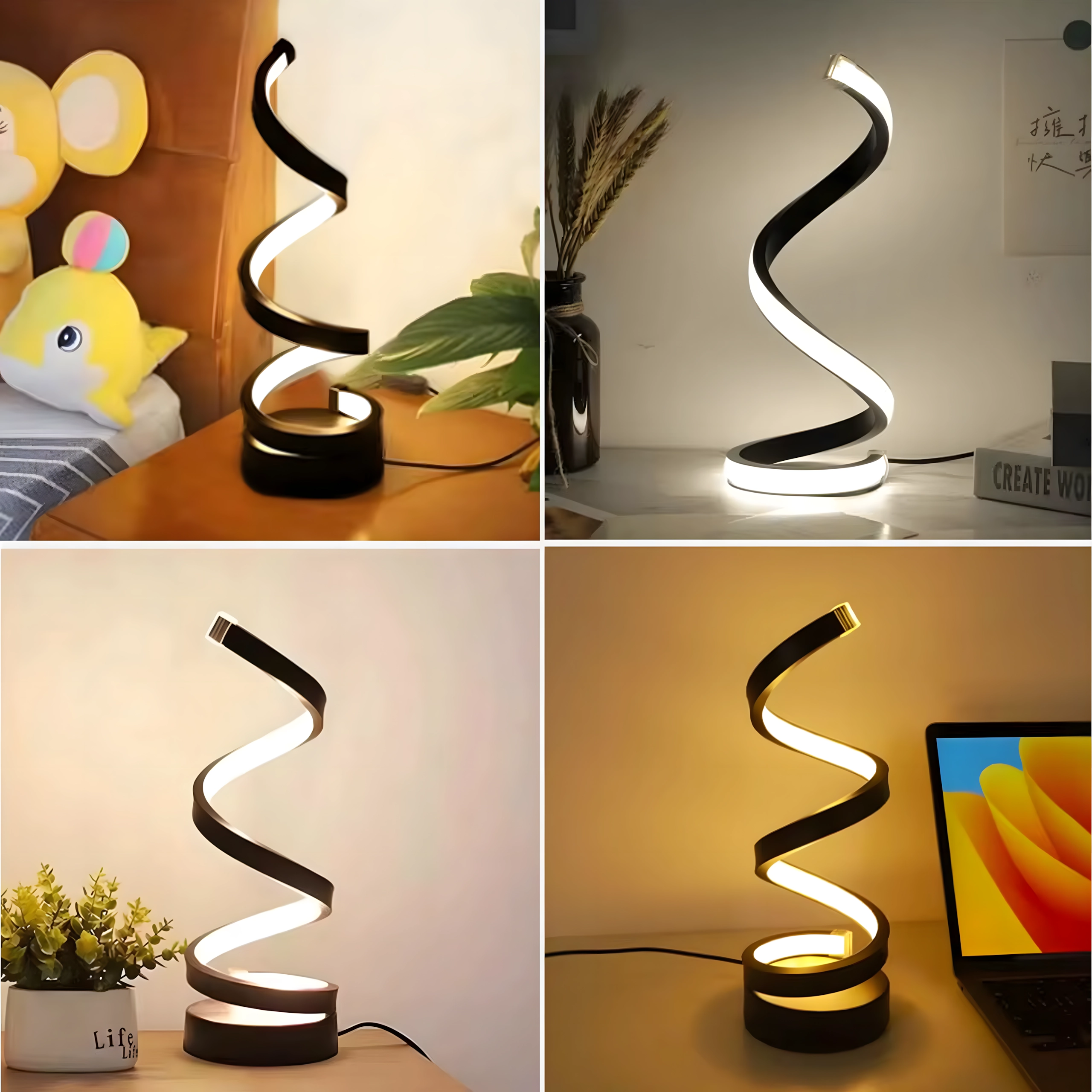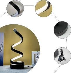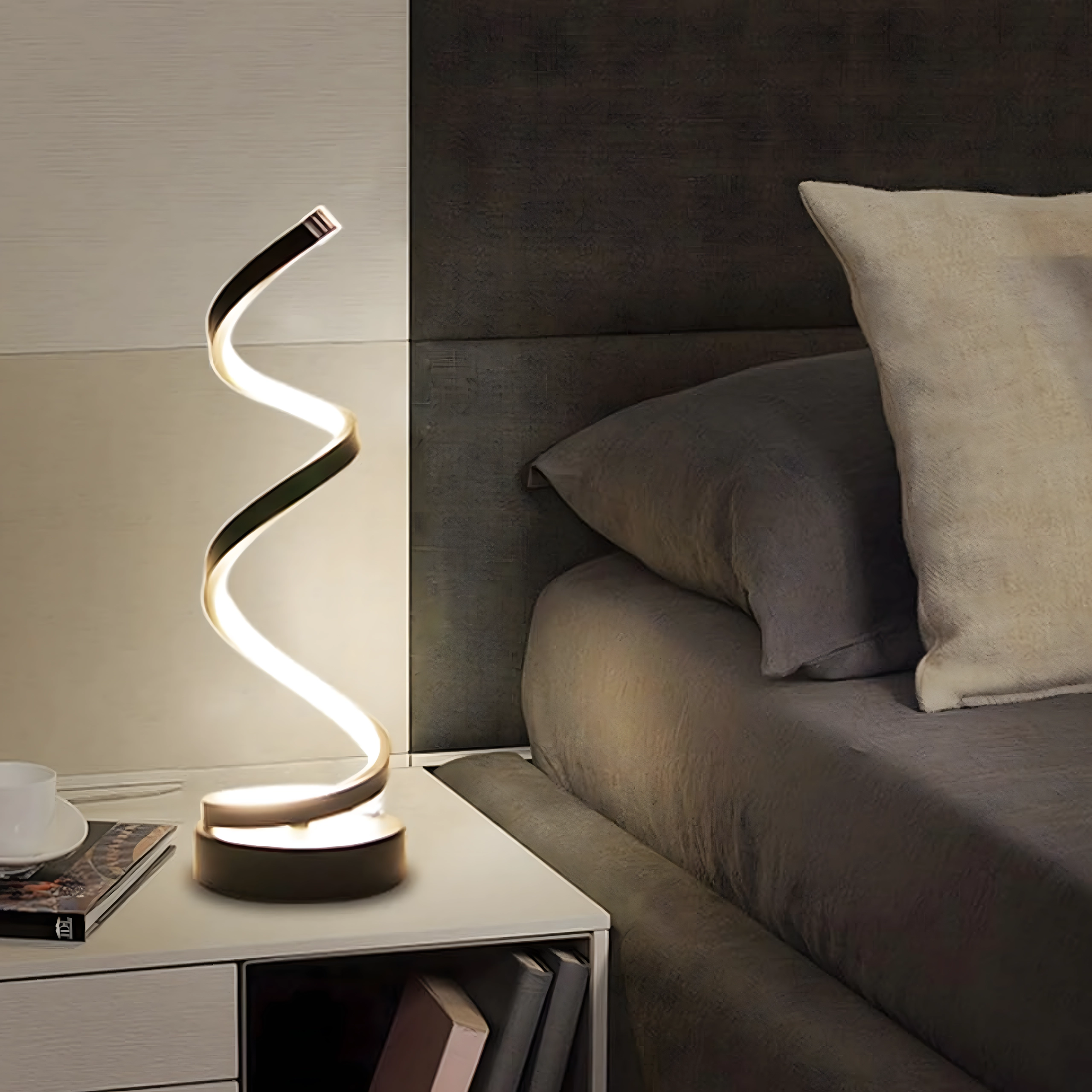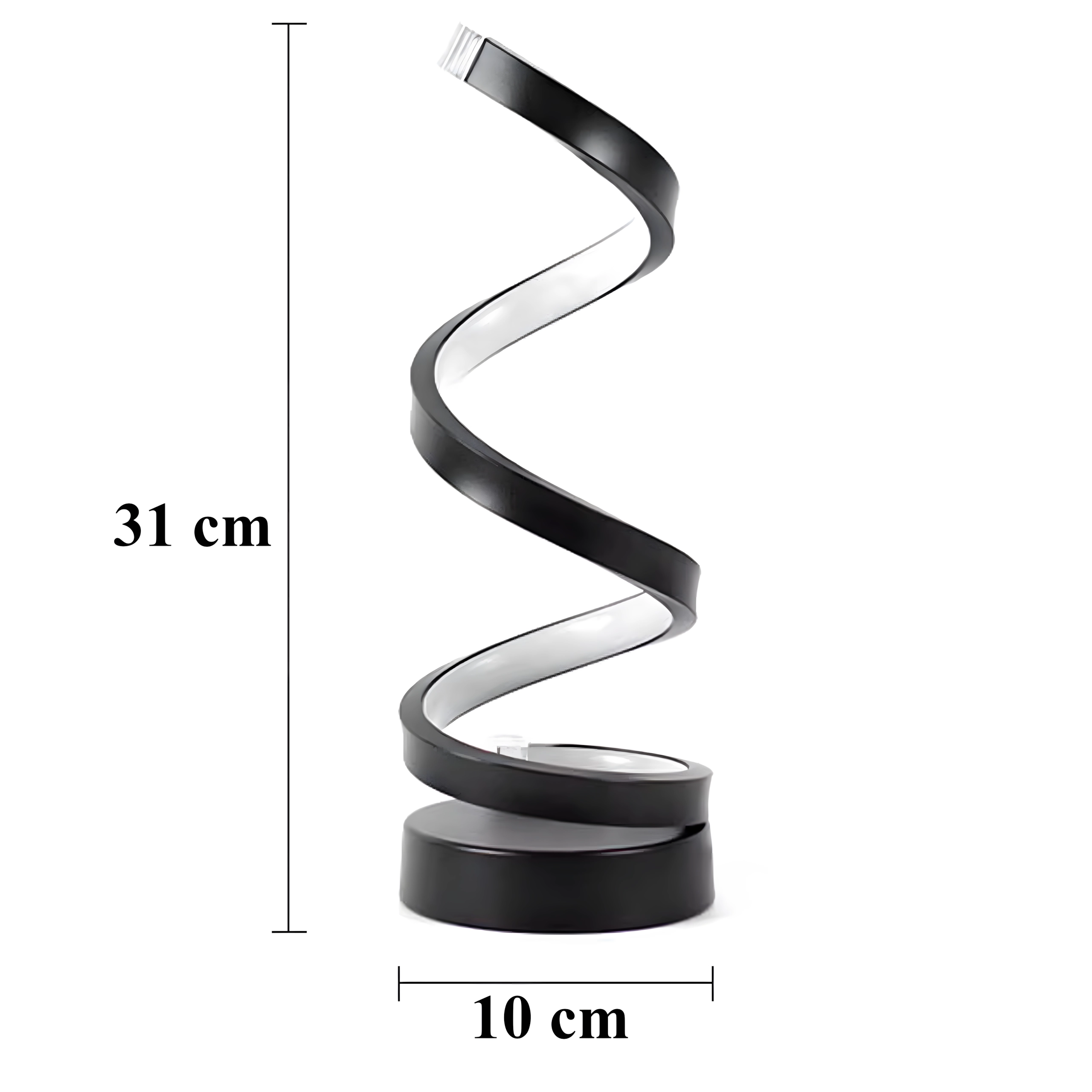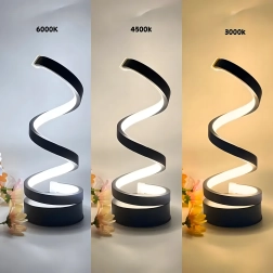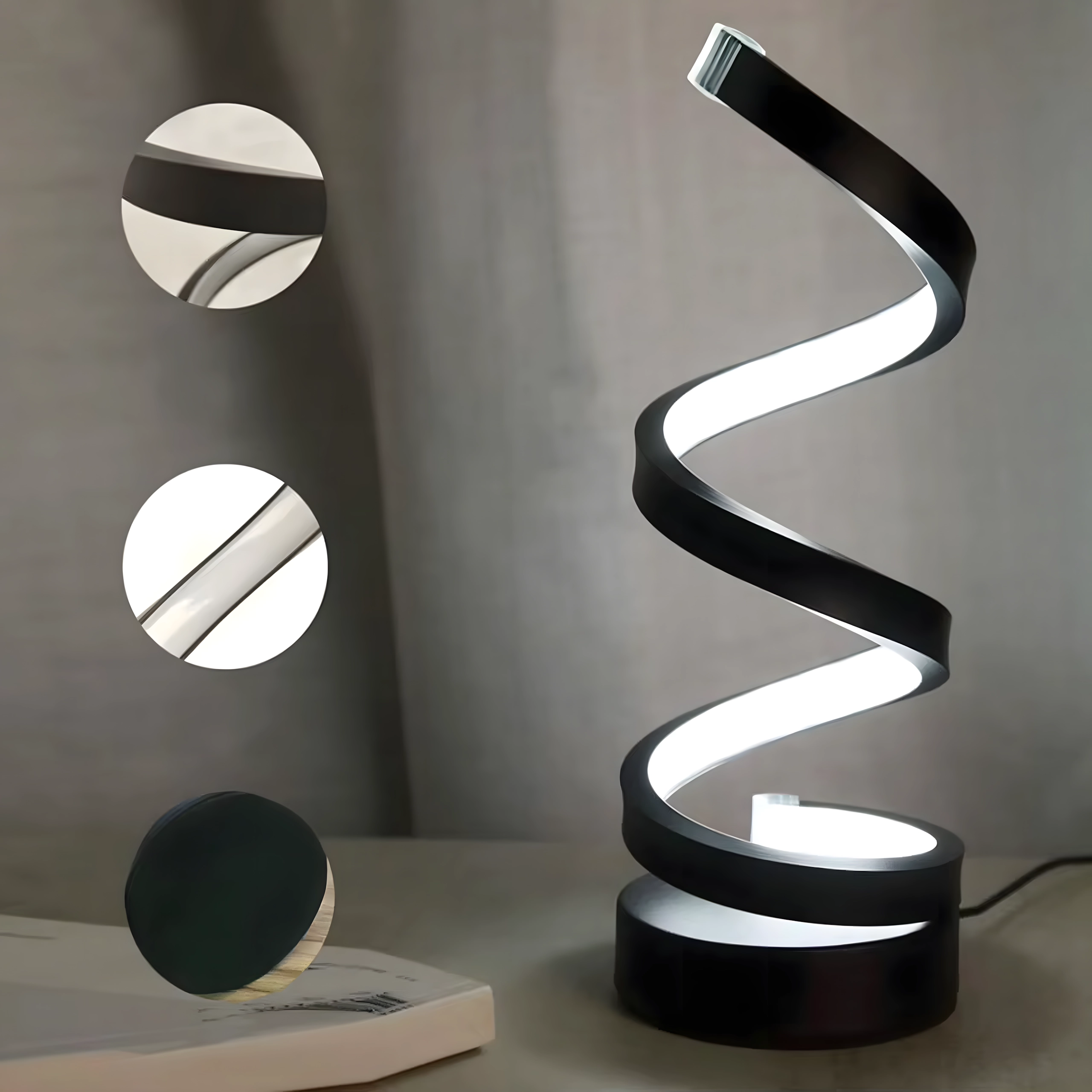 Sa spirale sculpturale fait office d’élément décoratif et de source lumineuse pratique. La lampe est alimentée sur secteur par câble, offrant ainsi un fonctionnement stable et fiable sans recharge. Elle convient aux intérieurs modernes, chambres, salons et espaces de travail.