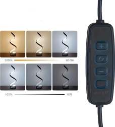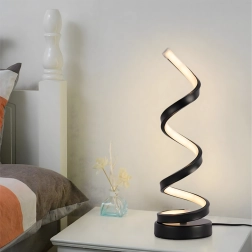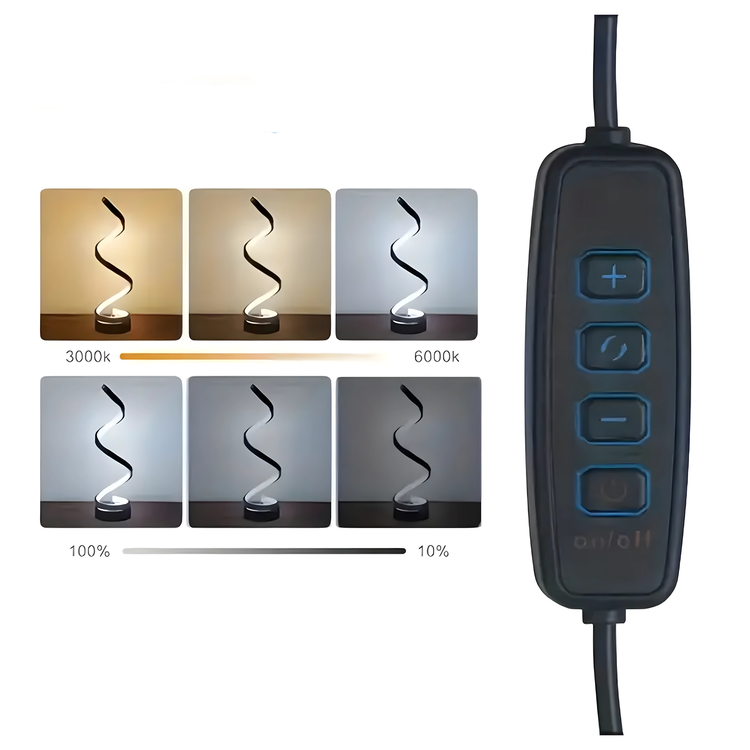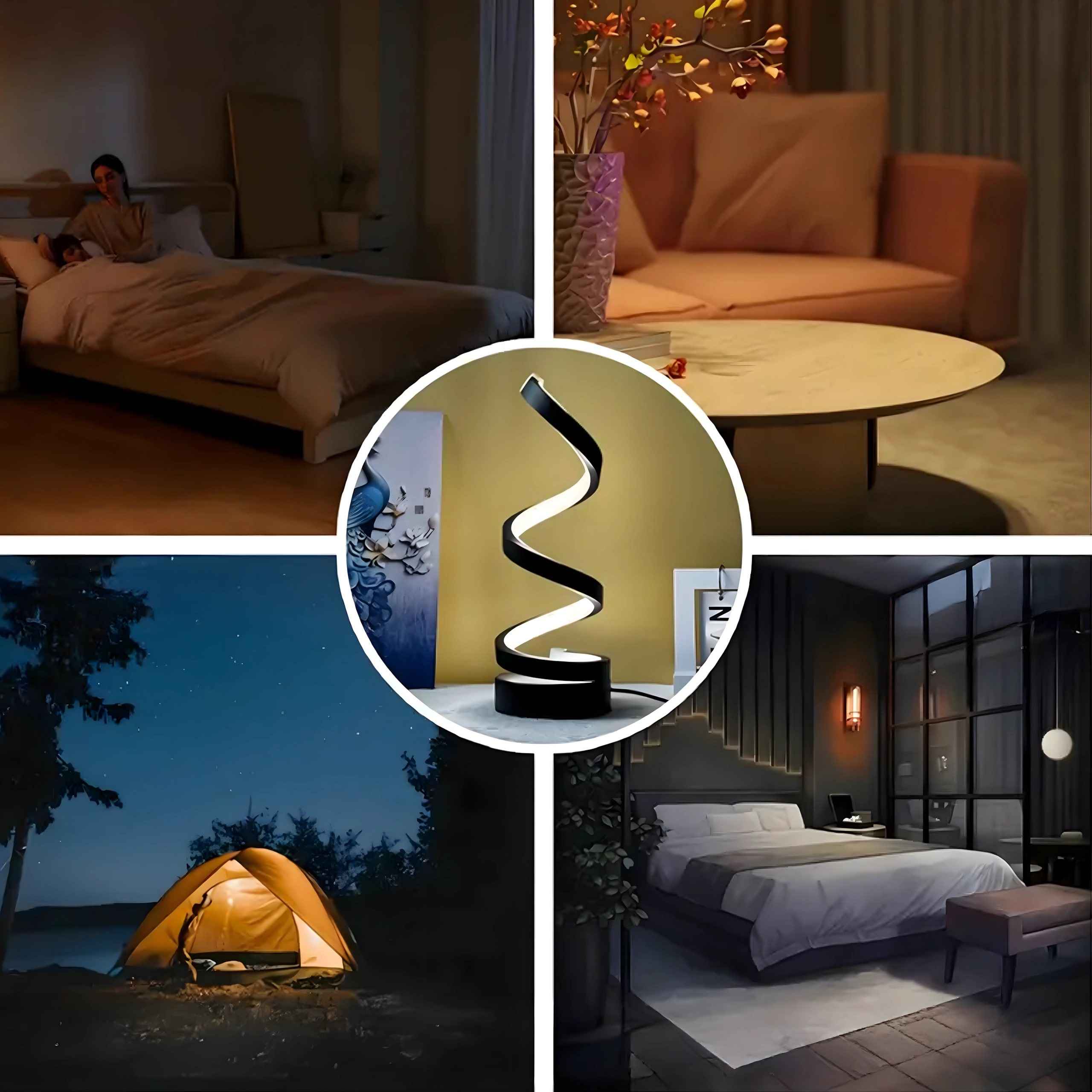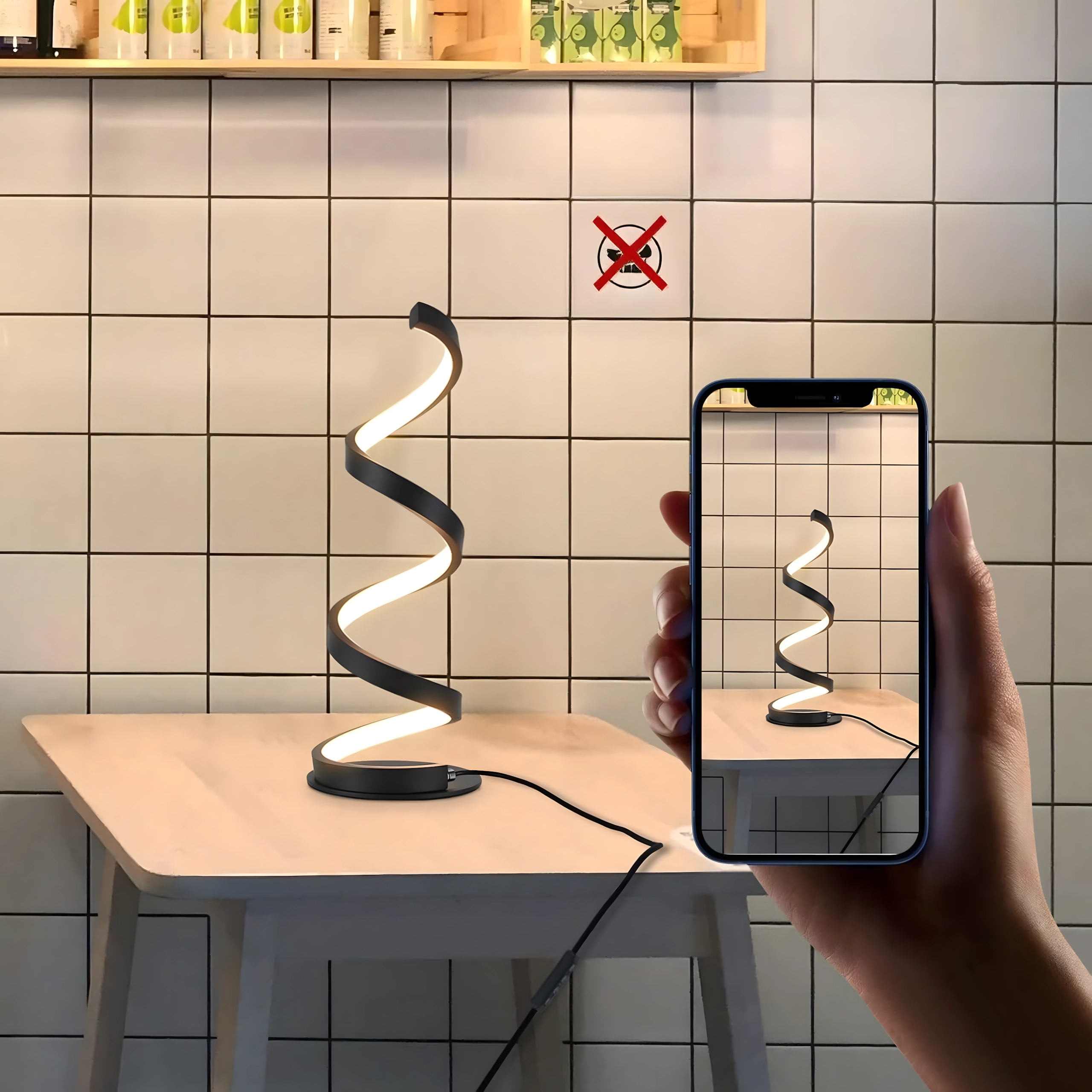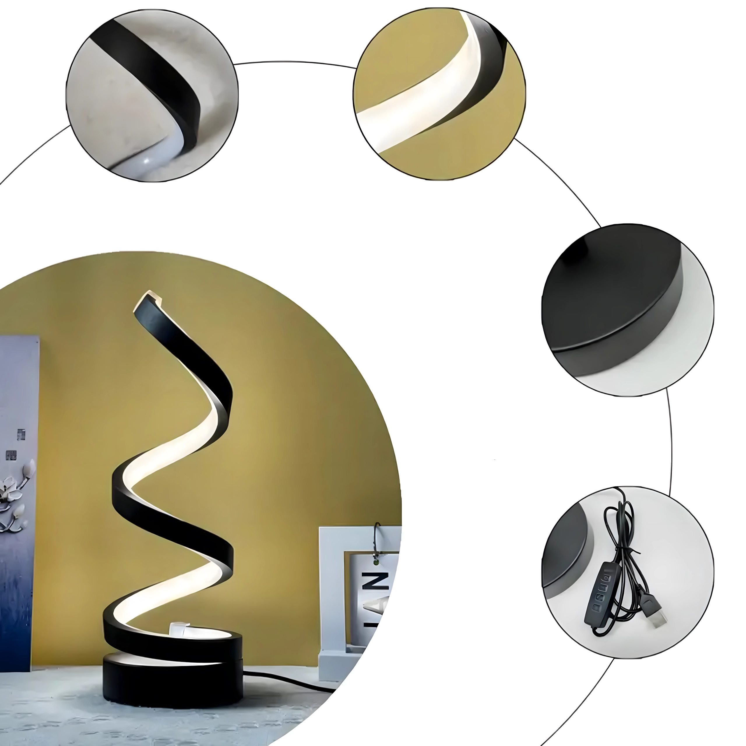 Sa spirale sculpturale fait office d’élément décoratif et de source lumineuse pratique. La lampe est alimentée sur secteur par câble, offrant ainsi un fonctionnement stable et fiable sans recharge. Elle convient aux intérieurs modernes, chambres, salons et espaces de travail.